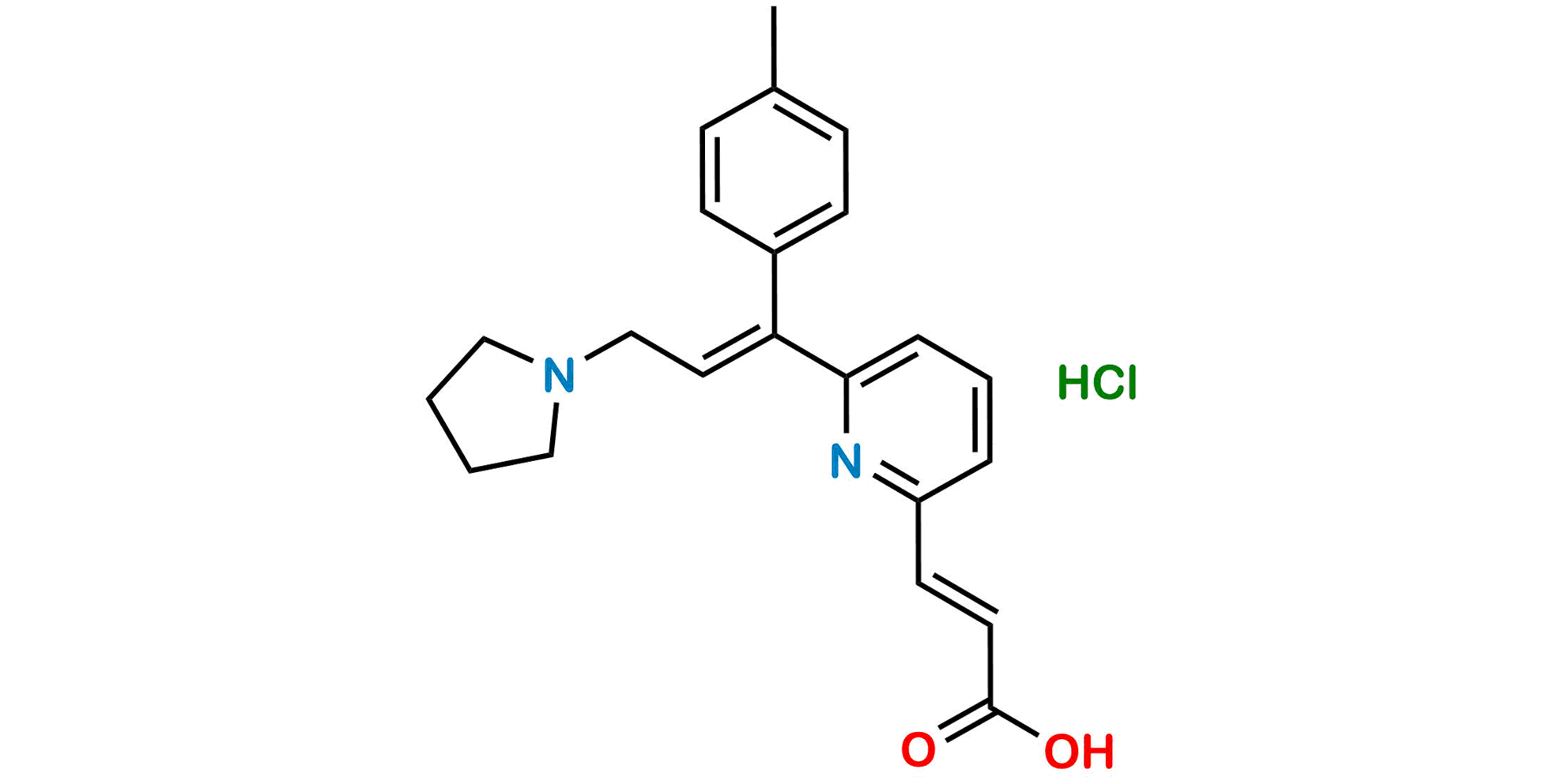 Chemical Name: (E)-3-(6-((E)-3-(pyrrolidin-1-yl)-1-(p-tolyl)prop-1-en-1-yl)pyridin-2-yl)acrylic acid Hydrochloride
