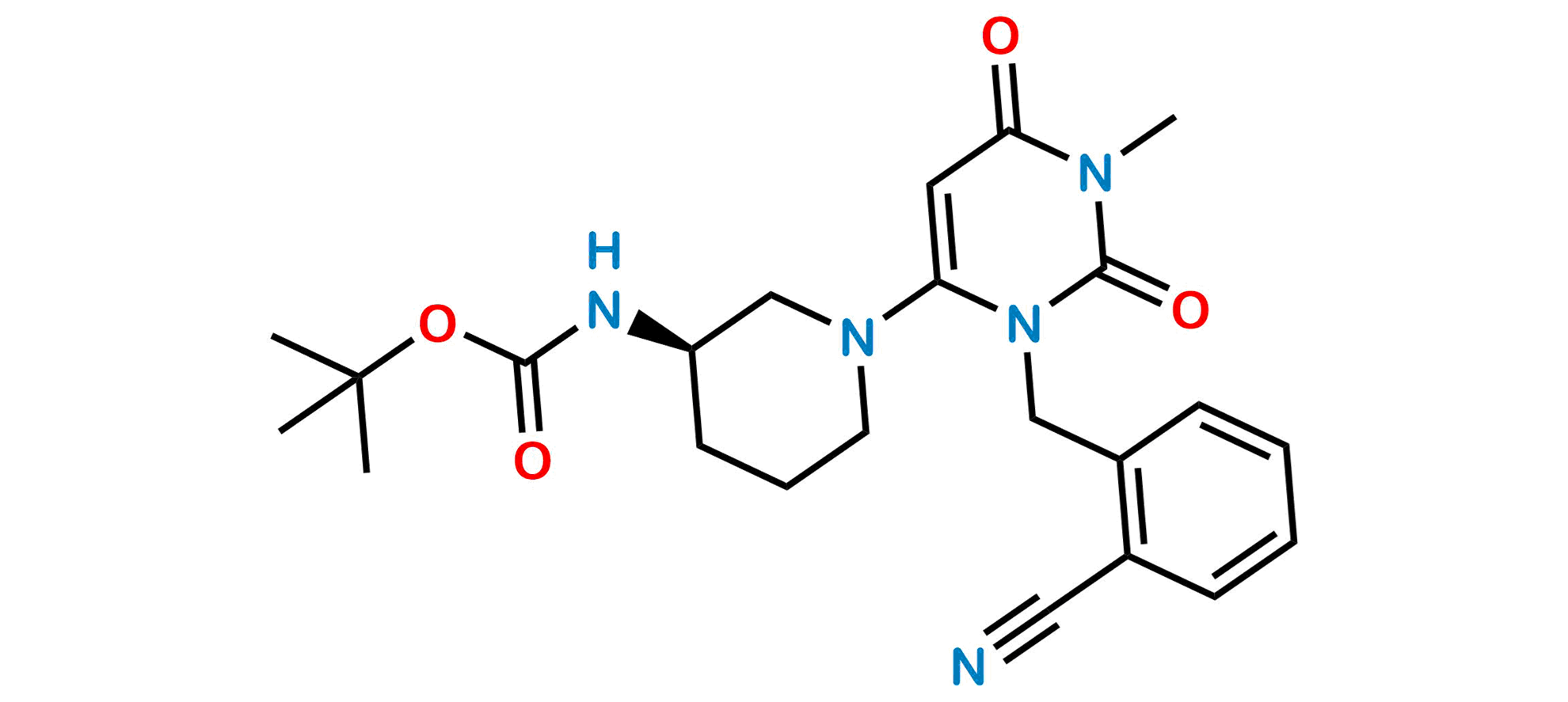 Chemical Name: Tert-butyl (R)-(1-(3-(2-cyanobenzyl)-1-methyl-2,6-dioxo-1,2,3,6-tetrahydropyrimidin-4-yl)piperidin-3-yl)carbamate