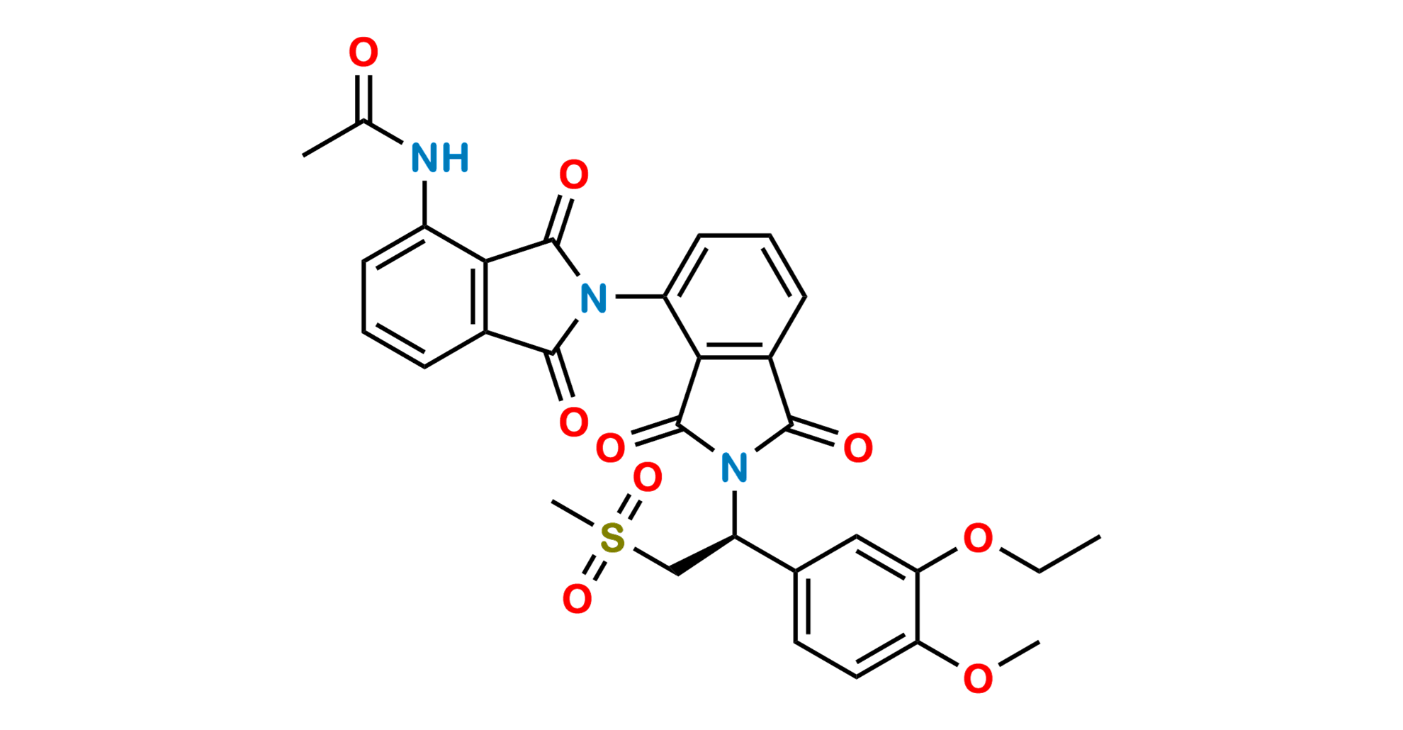 Chemical Name: (S)-N-(2'-(1-(3-ethoxy-4-methoxyphenyl)-2-(methylsulfonyl)ethyl)-1,1',3,3'-tetraoxo-[2,4'-biisoindolin]-4-yl)acetamide