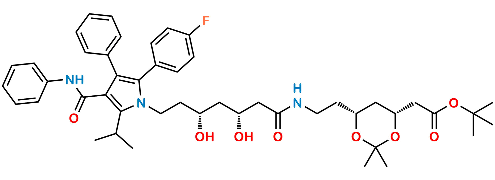 Chemical Name: 1,1-Dimethylethyl (4R,6R)-6-[2-[[(3R,5R)-7-[2-(4-fluorophenyl)-5-(1-methylethyl)-3-phenyl-4-[(phenylamino)carbonyl]-1H-pyrrol-1-yl]-3,5-dihydroxy-1-oxoheptyl]amino]ethyl]-2,2-dimethyl-1,3-dioxane-4-acetate