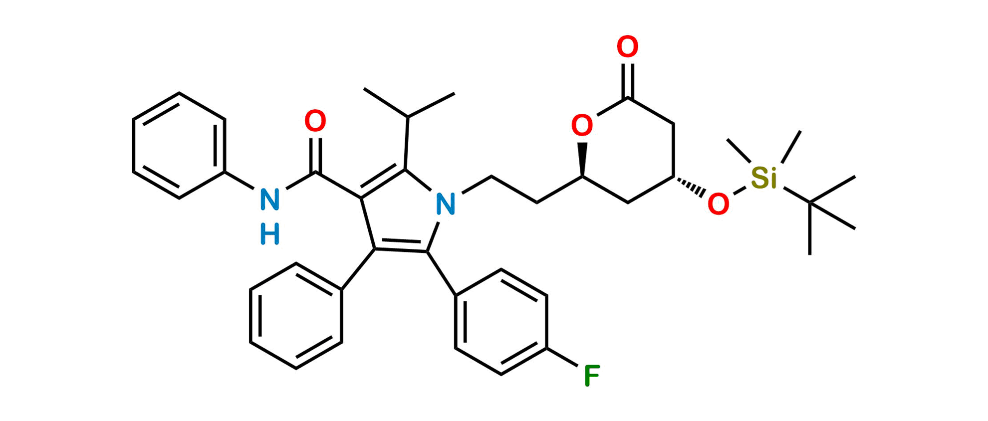 Smile: O=C(C1=C(C(C)C)N(CC[C@@H]2C[C@@H](O[Si](C)(C)C(C)(C)C)CC(O2)=O)C(C3=CC=C(F)C=C3)=C1C4=CC=CC=C4)NC5=CC=CC=C5