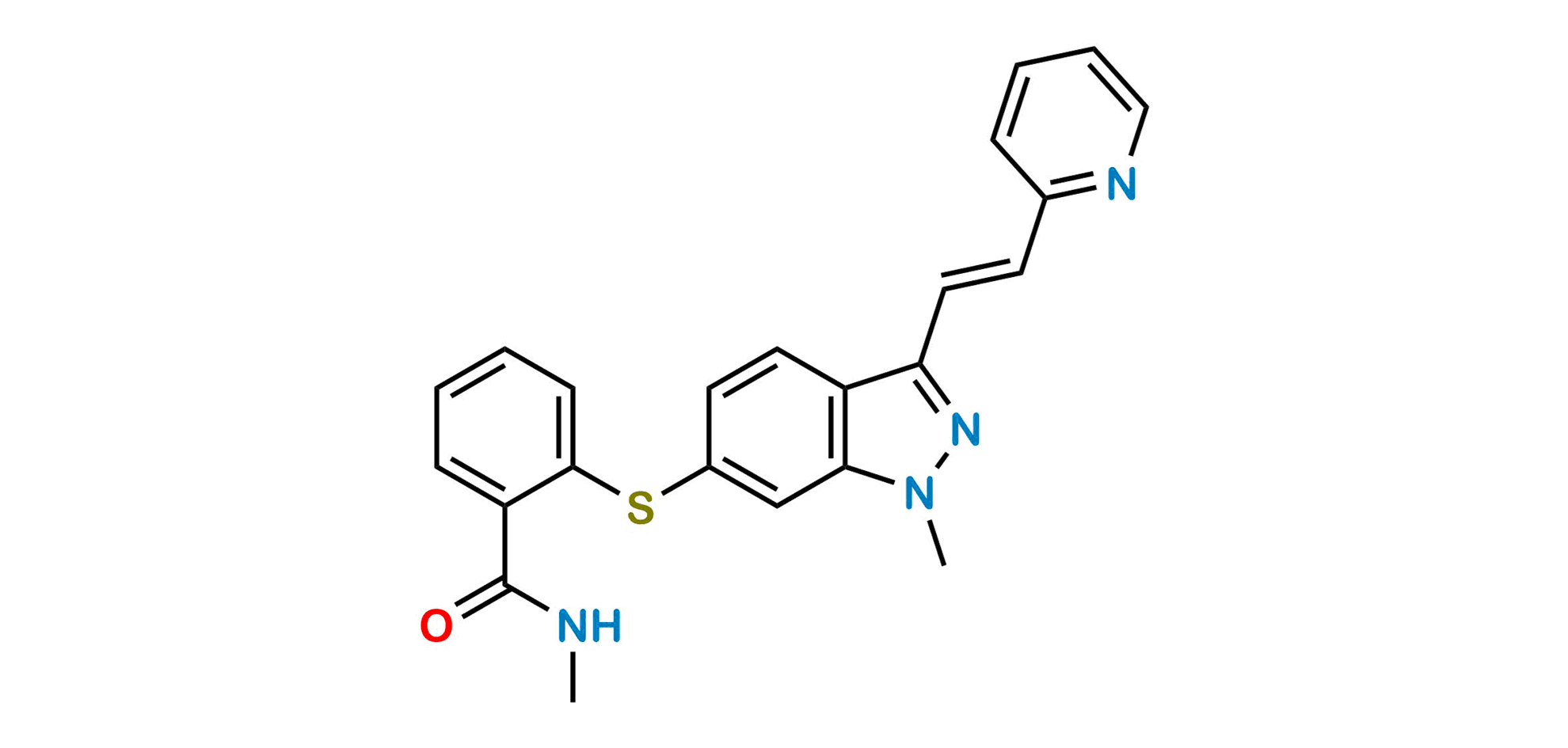 Chemical Name: N-Methyl-2-[[3-[(1E)-2-(2-pyridinyl)ethenyl]-1-methyl-indazol-6-yl]sulfanyl]-benzamide