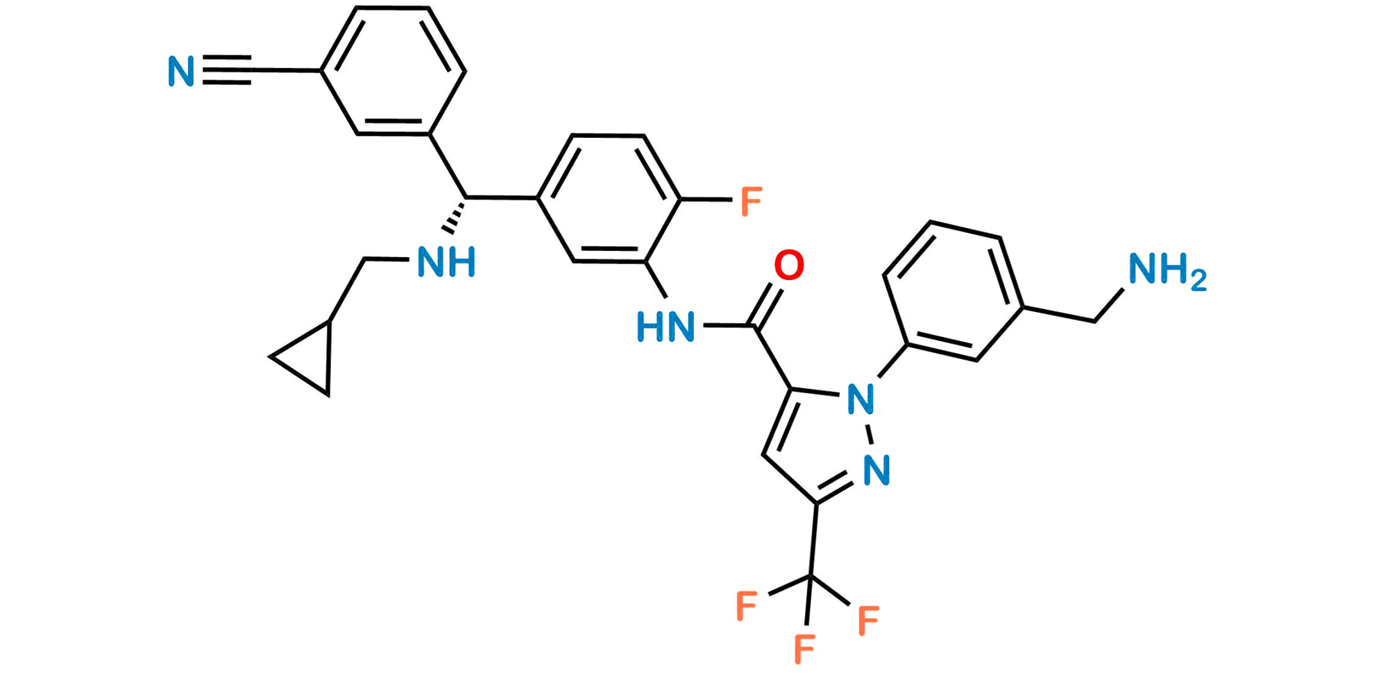Chemical Name: (R)-1-(3-(aminomethyl)phenyl)-N-(5-((3-cyanophenyl)((cyclopropylmethyl)amino)methyl)-2-fluorophenyl)-3-(trifluoromethyl)-1H-pyrazole-5-carboxamide
