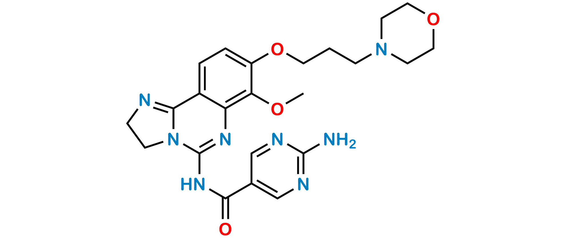 Chemical Name: 2-amino-N-(7-methoxy-8-(3-morpholinopropoxy)-2,3-dihydroimidazo[1,2-c]quinazolin-5-yl)pyrimidine-5-carboxamide
