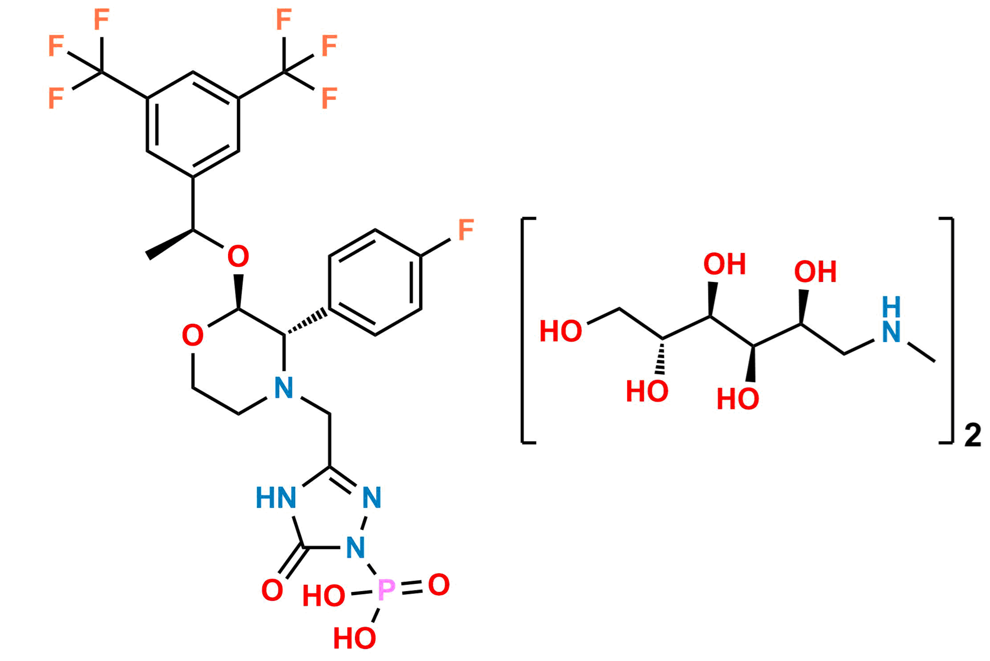 Mol.F.: C23H22F7N4O6P : 2(C7H17NO5)