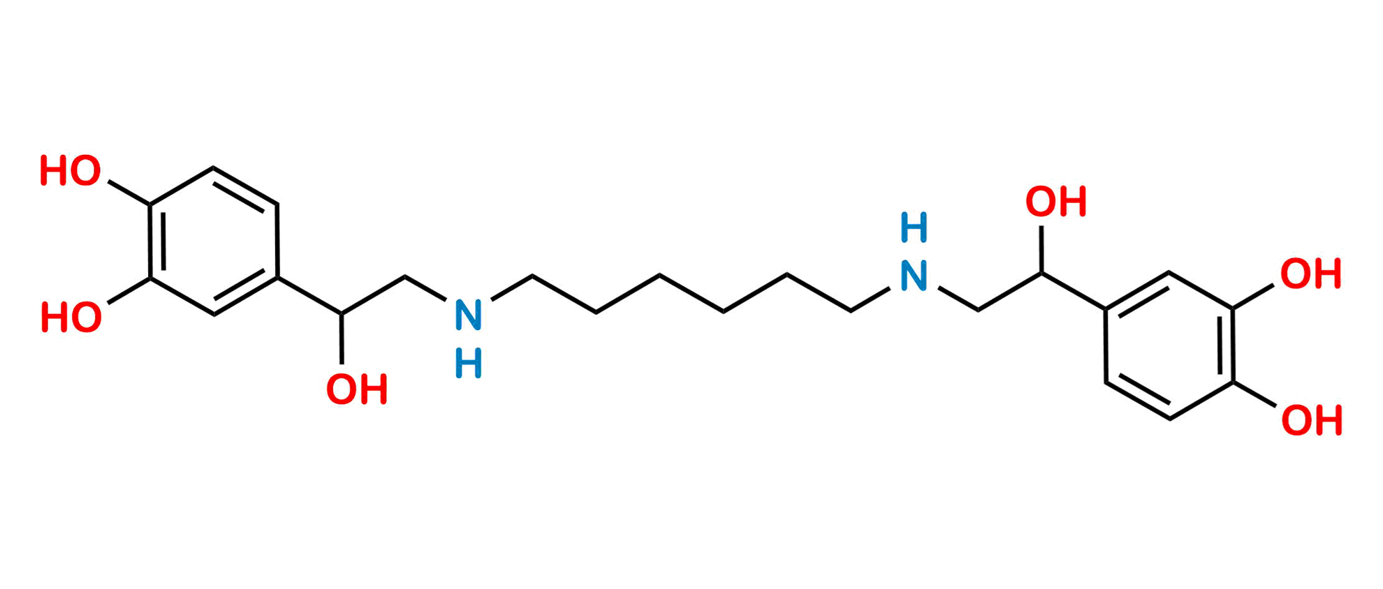 Smile: OC(C1=CC(O)=C(O)C=C1)CNCCCCCCNCC(C2=CC(O)=C(O)C=C2)O
