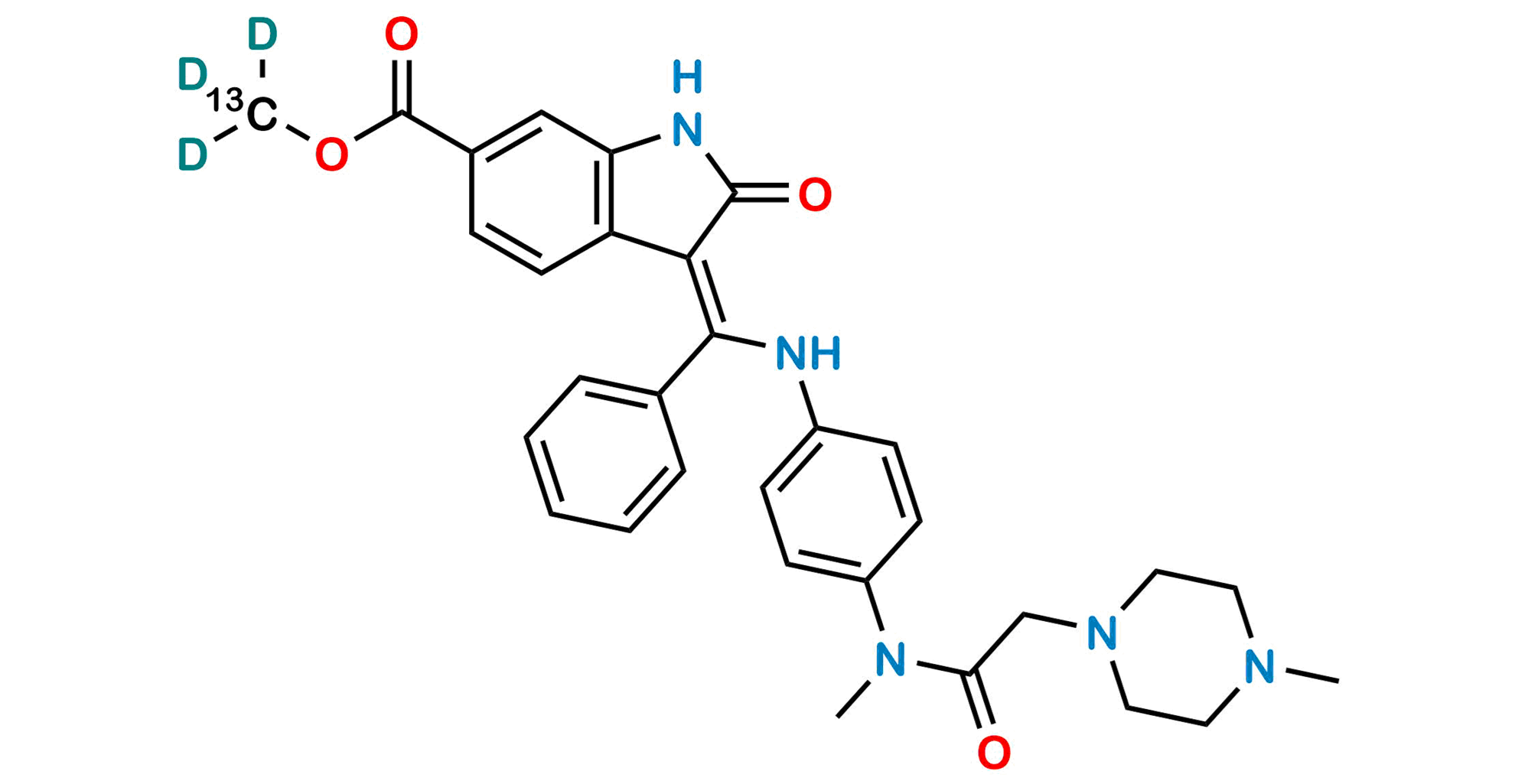 Chemical Name: methyl(3Z)-3-{[(4-{N-methyl-2-[4-(13C,d3)methylpiperazin-1-yl]cetamido}phenyl)amino](phenyl)methylidene}-2-oxo-2,3-dihydro-1H-indole-6-carboxylate
