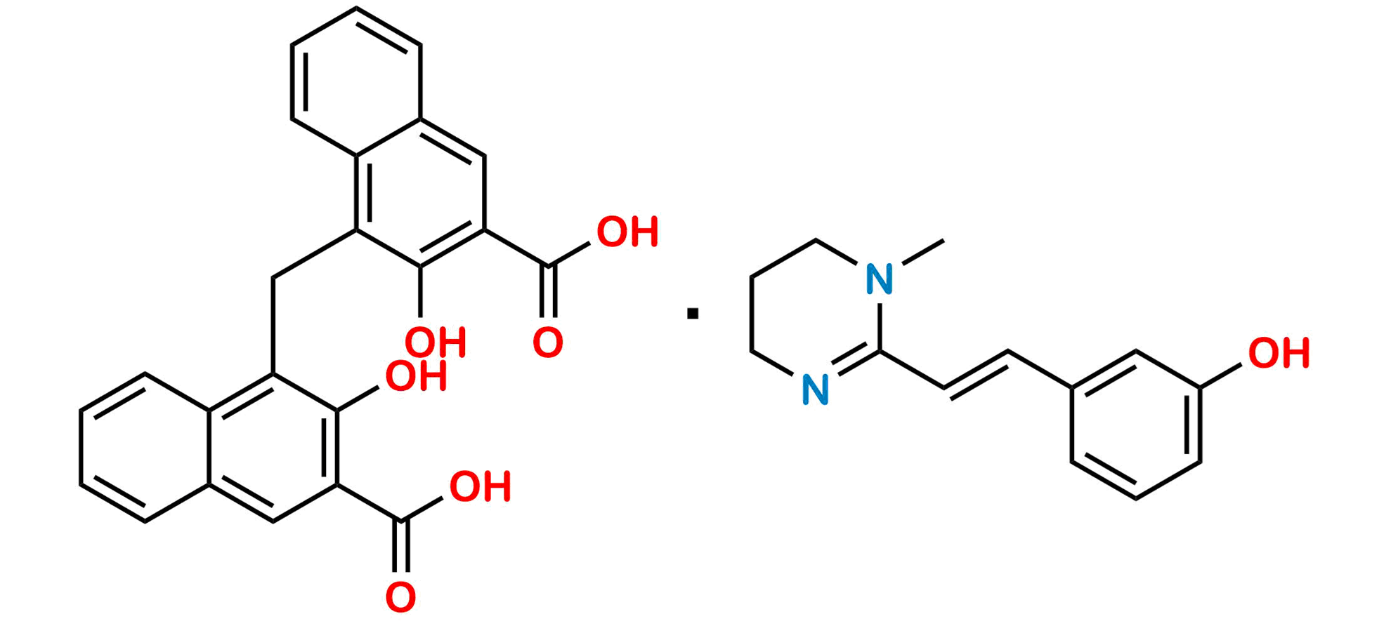 Synonym: (E)-3-(2-(1-Methyl-1,4,5,6-tetrahydropyrimidin-2-yl)vinyl)phenol 4,4'-methylenebis(3-hydroxy-2-naphthoate)