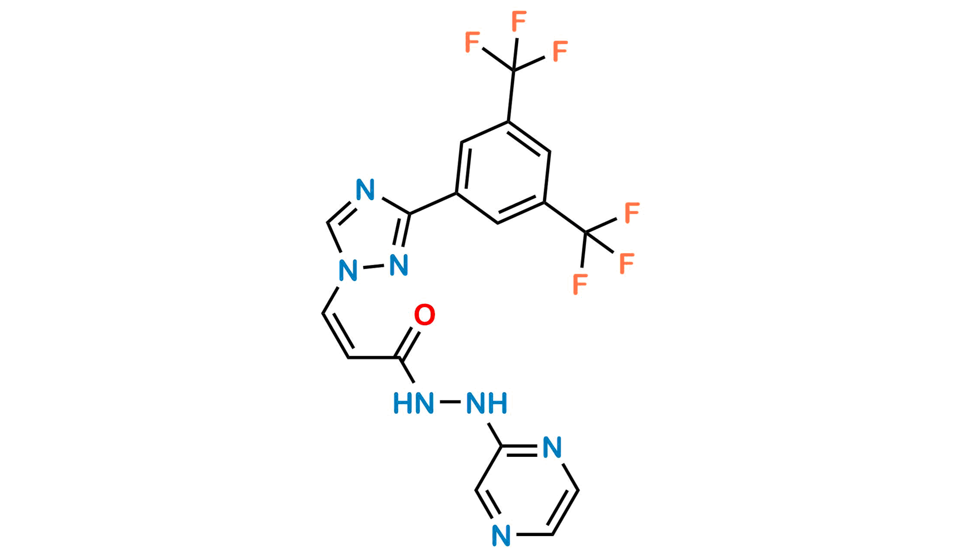 Chemical Name: (Z)-3-(3-(3,5-bis(trifluoromethyl)phenyl)-1H-1,2,4-triazol-1-yl)-N'-(pyrazin-2-yl)acrylohydrazide
