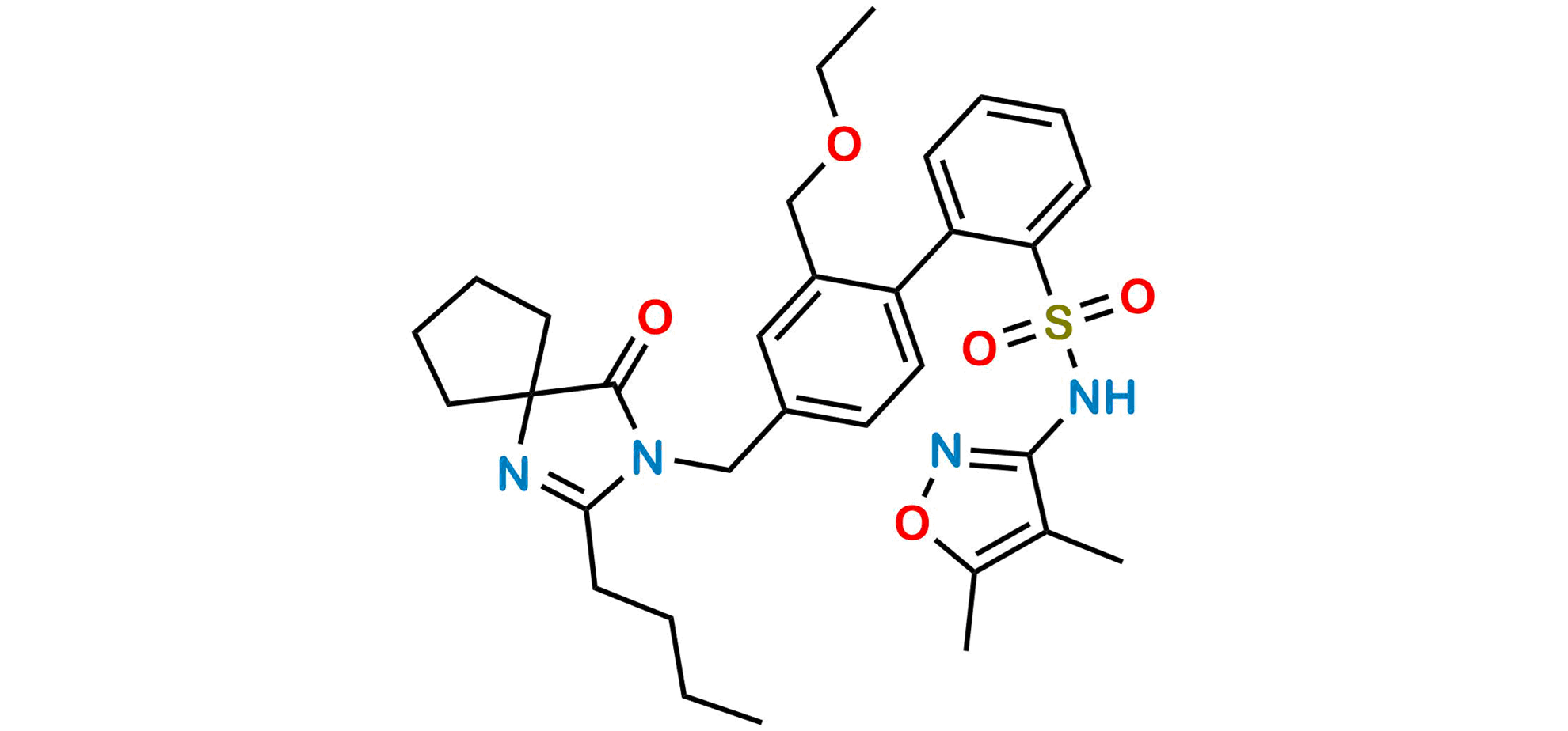 Chemical Name: 2-[4-[(2-butyl-4-oxo-1,3-diazaspiro[4.4]non-1-en-3-yl)methyl]-2-(ethoxymethyl)phenyl]-N-(4,5-dimethyl-1,2-oxazol-3-yl)benzenesulfonamide