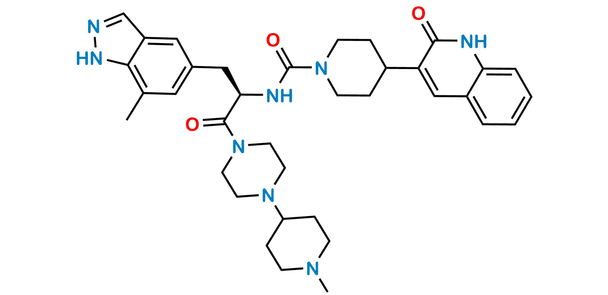 Chemical Name: 4-(1,2-Dihydro-2-oxo-3-quinolinyl)-N-[(1R)-1-[(7-methyl-1H-indazol-5-yl)methyl]-2-[4-(1-methyl-4-piperidinyl)-1-piperazinyl]-2-oxoethyl]-1-piperidinecarboxamide