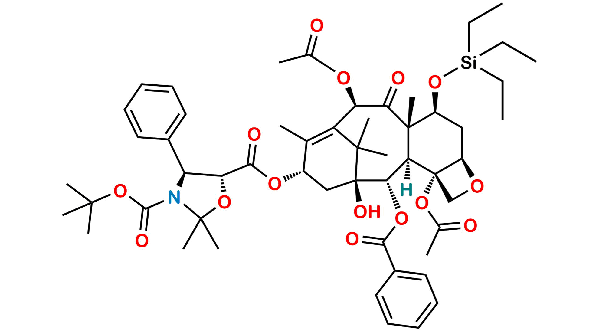 Chemical Name: (4S,5R)-2,2-Dimethyl-4-phenyl-3,5-oxazolidinedicarboxylic Acid 5-[(2aR,4S,4aS,6R,9S,11S,12S,12aR,12bS)-6,12b-Bis(acetyloxy)-12-(benzoyloxy)-2a,3,4,4a,5,6,9,10,11,12,12a,12b-dodecahydro-11-hydroxy-4a,8,13,13-tetramethyl-5-oxo-4-[(triethylsilyl)oxy]-7,11-methano-1H-cyclodeca[3,4]benz[1,2-b]oxet-9-yl] 3-(1,1-dimethylethyl) Ester;3,5-Oxazolidinedicarboxylic acid, 2,2-dimethyl-4-phenyl-, 5-[6,12b-bis(acetyloxy)-12-(benzoyloxy)-2a,3,4,4a,5,6,9,10,11,12,12a,12b-dodecahydro-11-hydroxy-4a,8,13,13-tetramethyl-5-oxo-4-[(triethylsilyl)oxy]-7,11-methano-1H-cyclodeca[3,4]benz[1,2-b]oxet-9-yl] 3-(1,1-dimethylethyl) ester, [2aR-[2aα,4β,4aβ,6β,9α(4S*,5R*),11α,12α,12aα,12bα]]- 7,11-Methano-1H-cyclodeca[3,4]benz[1,2-b]oxete, 3,5-oxazolidinedicarboxylic acid deriv.;3-(tert-butyl) 5-((2aR,4S,4aS,6R,9S,11S,12S,12bS)-6,12b-diacetoxy-12-(benzoyloxy)-11-hydroxy-4a,8,13,13-tetramethyl-5-oxo-4-((triethylsilyl)oxy)-2a,3,4,4a,5,6,9,10,11,12,12a,12b-dodecahydro-1H-7,11-methanocyclodeca[3,4]benzo[1,2-b]oxet-9-yl) (4S,5R)-2,2-dimethyl-4-phenyloxazolidine-3,5-dicarboxylate;