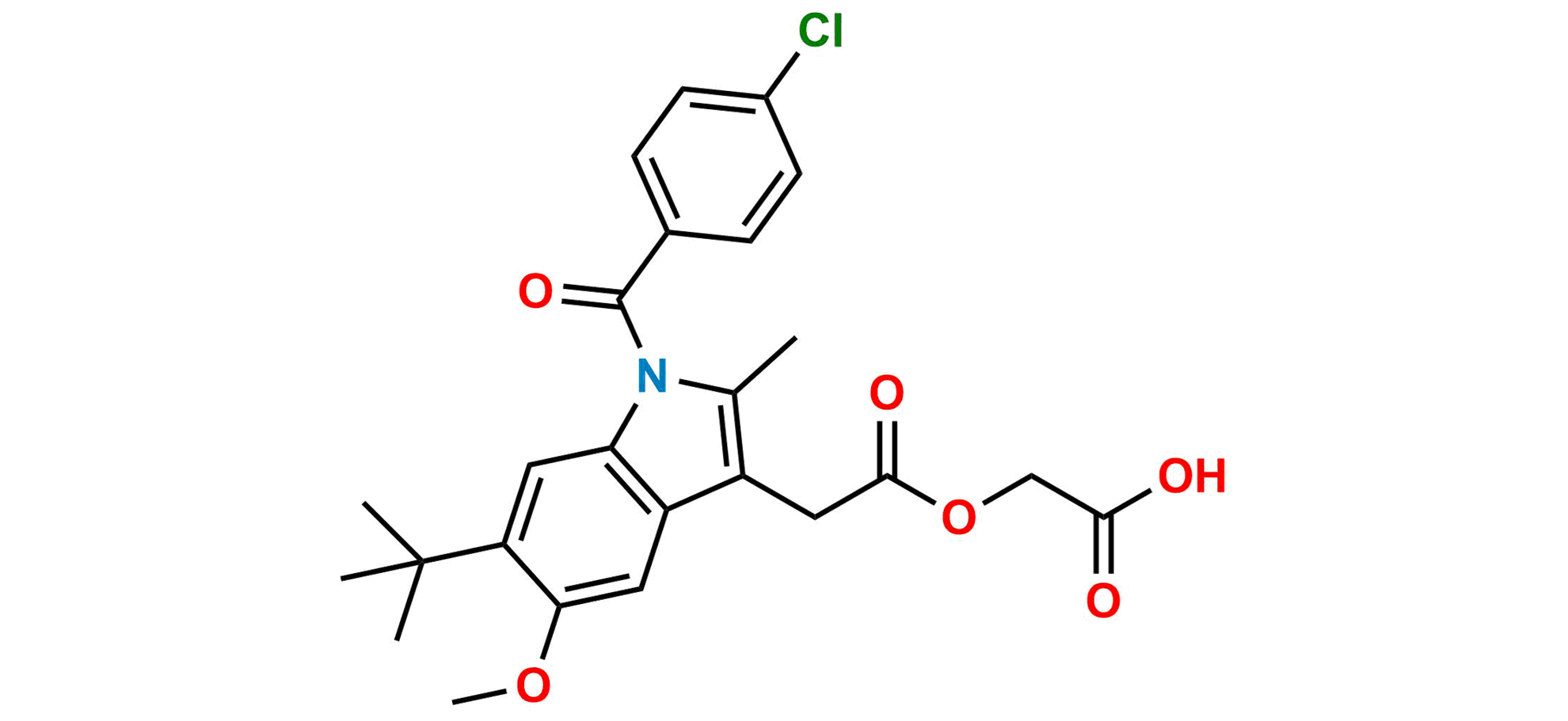 Chemical Name: [[[1-(4-chlorobenzoyl)-6-(1,1-dimethylethyl)-5-methoxy-2-methyl-1H-indol-3-yl]acetyl]oxy]acetic acid (as per EP)