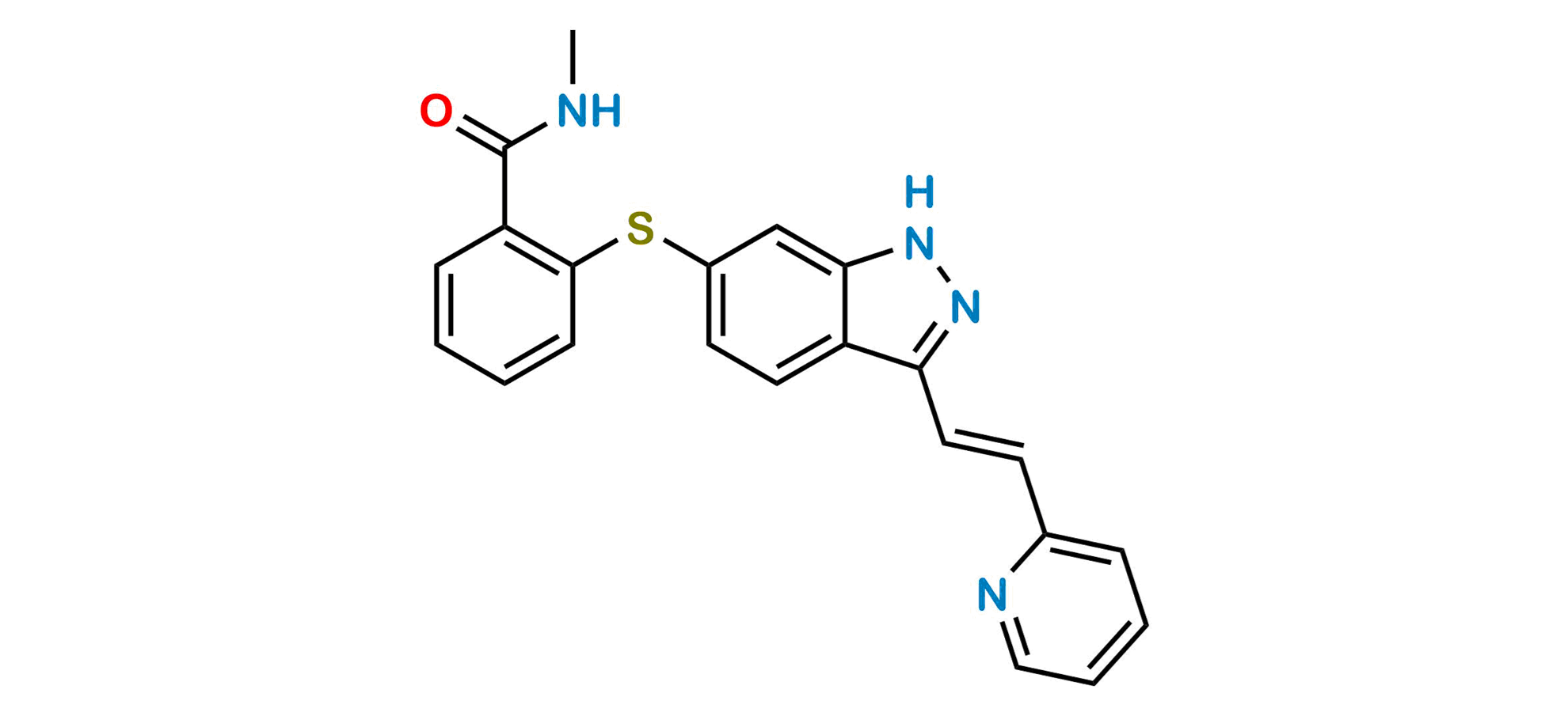 Chemical Name: N-Methyl-2-[[3-[(1E)-2-(2-pyridinyl)ethenyl]-1H-indazol-6-yl]sulfanyl]-benzamide
