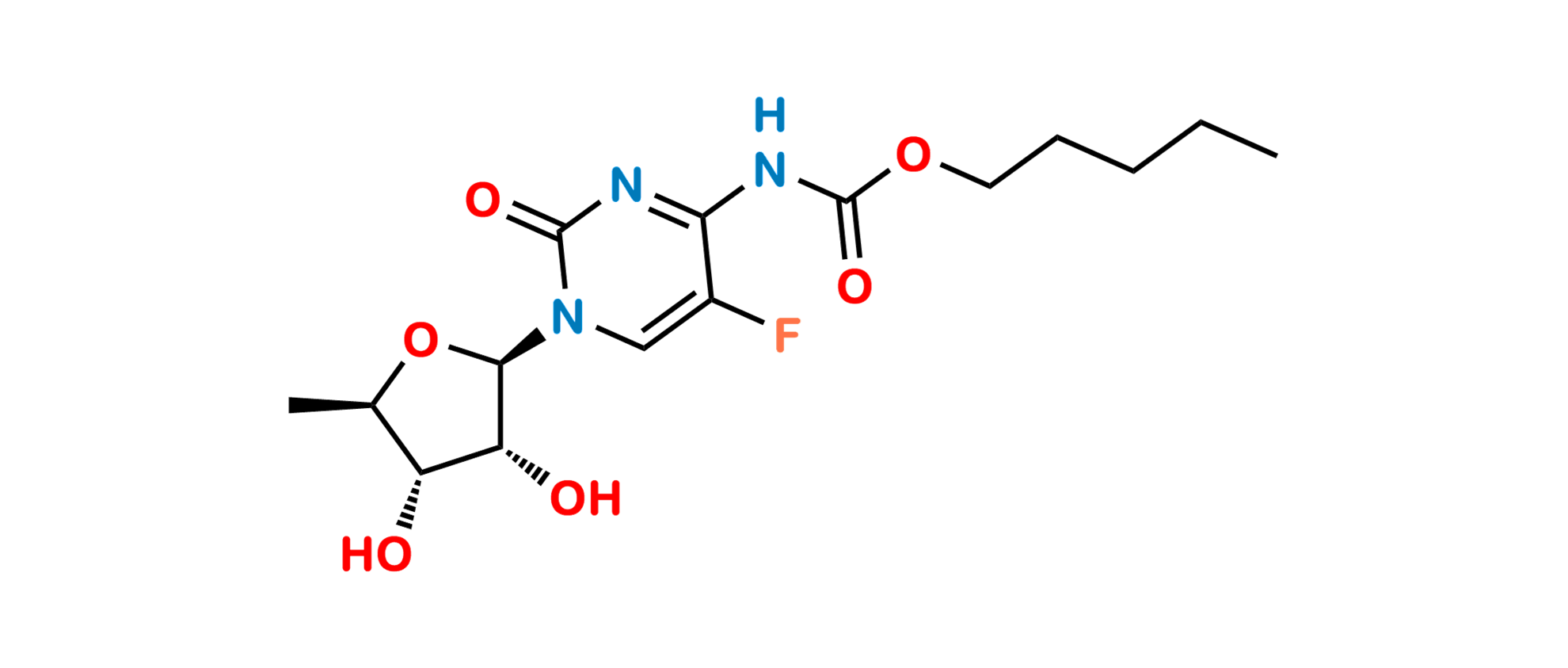 Chemical Name: Pentyl [1-(5-deoxy-β-D-ribofuranosyl)-5-fluoro-2-oxo-1,2-dihydropyrimidin-4-yl]carbamate (as per EP); Pentyl 1-(5-deoxy-β-d-ribofuranosyl)-5-fluoro-1,2-dihydro-2-oxo-4-pyrimidinecarbamate (as per USP)