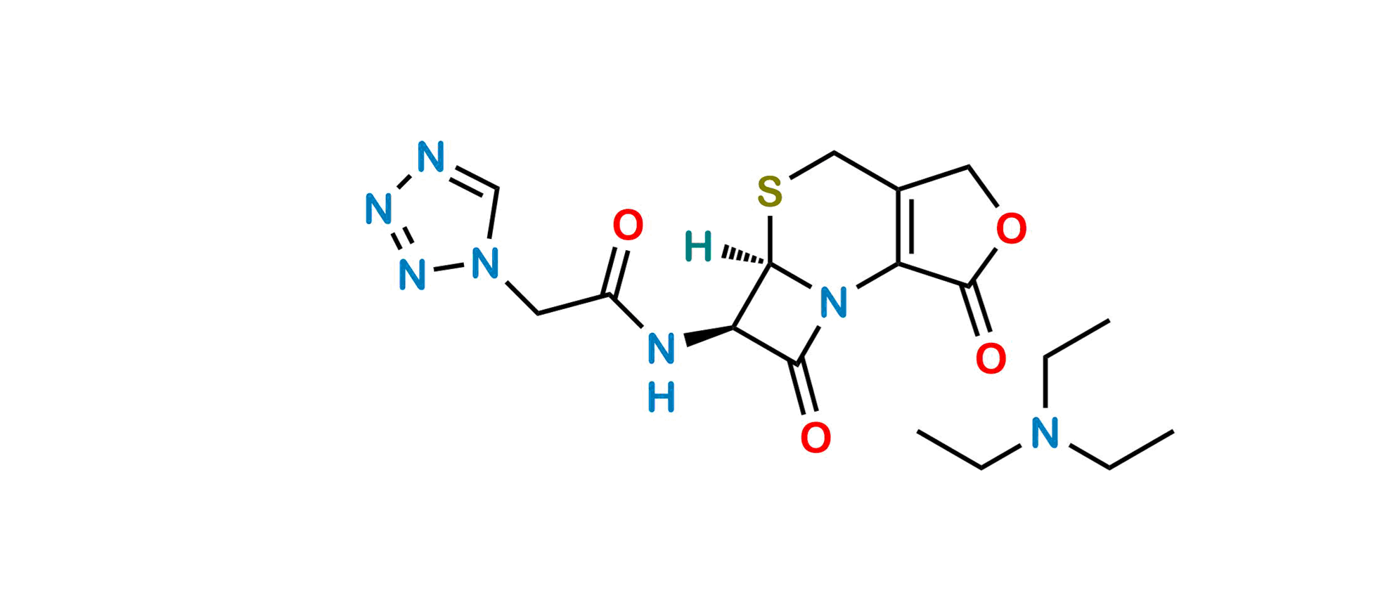 Chemical Name: (5aR,6R)-6-[(1H-tetrazol-1-ylacetyl)amino]-5a,6-dihydro-3H,7H-azeto[2,1-b]furo[3,4-d][1,3]thiazine-1,7(4H)-dione compound with triethylamine (1:1) (as per EP); N-{(5aR,6R)-1,7-Dioxo-1,3,4,5a,6,7-hexahydroazeto[2,1-b]furo[3,4-d][1,3]thiazin-6-yl}-2-(1H-tetrazol-1-yl)acetamide compound with triethylamine (1:1) (as per USP)