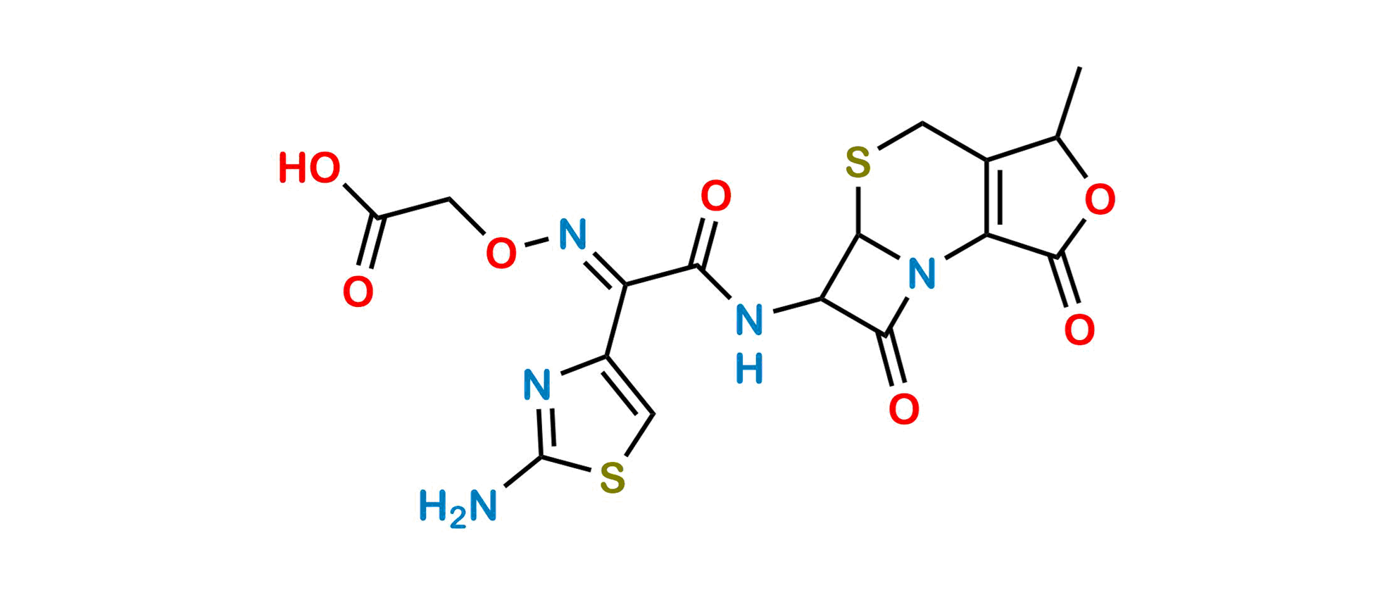 Chemical Name: (E)-2-(((1-(2-aminothiazol-4-yl)-2-((3-methyl-1,7-dioxo-1,4,5a,6-tetrahydro-3H,7H-azeto[2,1-b]furo[3,4-d][1,3]thiazin-6-yl)amino)-2-oxoethylidene)amino)oxy)acetic acid