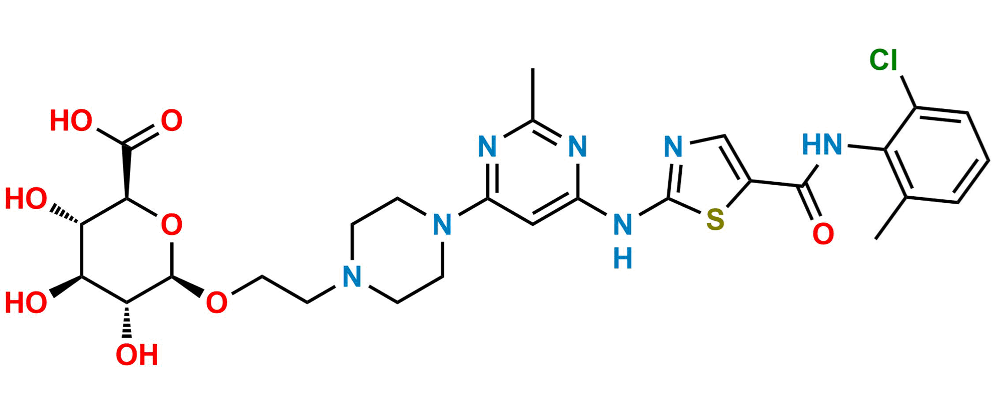 Chemical Name: (2S,3S,4S,5R)-6-(2-(4-(6-((5-((2-chloro-6-methylphenyl)carbamoyl)thiazol-2-yl)amino)-2-methylpyrimidin-4-yl)piperazin-1-yl)ethoxy)-3,4,5-trihydroxytetrahydro-2H-pyran-2-carboxylic acid
