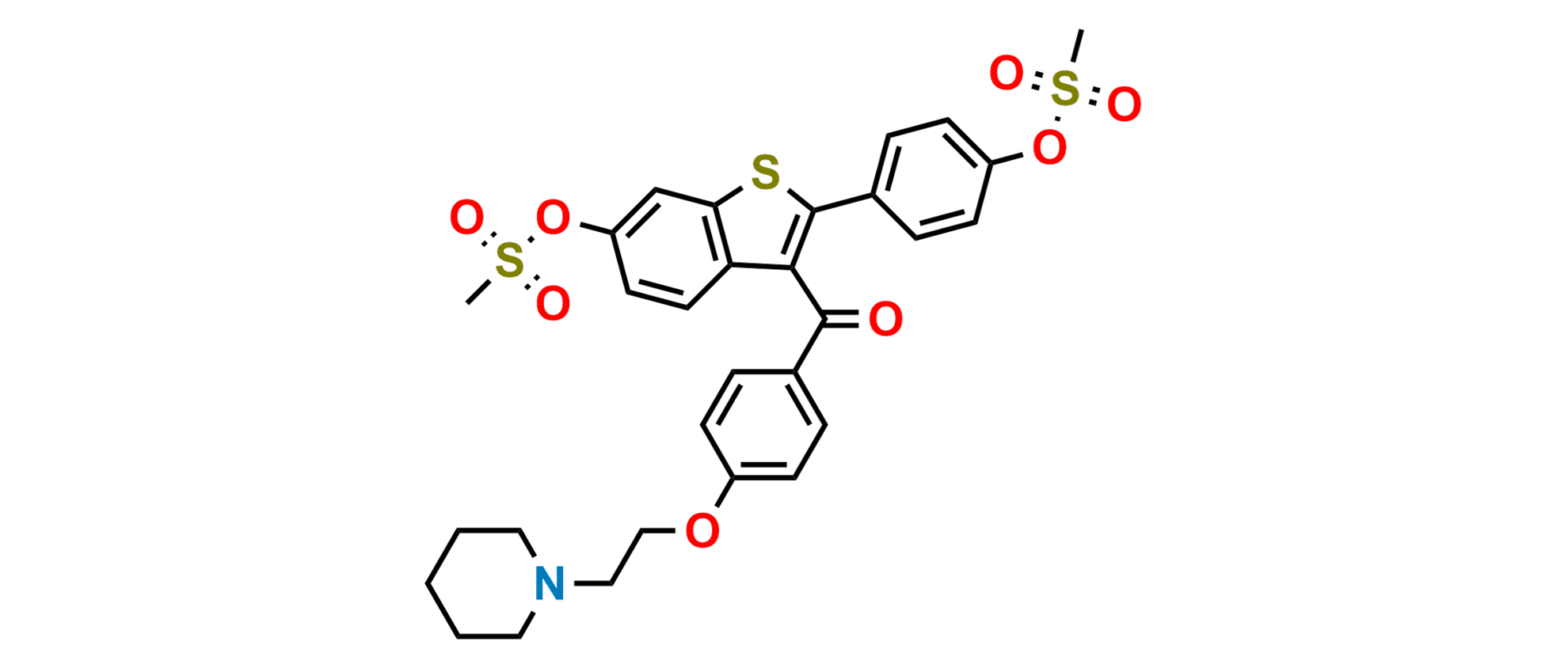 Chemical Name: 4-(6-(methylsulfonyloxy)-3-(4-(2-(piperidin-1-yl)ethoxy)benzoyl)benzo[b]thiophen-2-yl)phenyl methanesulfonate