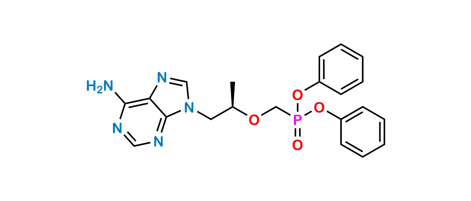 Smile: C[C@@H](OCP(OC1=CC=CC=C1)(OC2=CC=CC=C2)=O)CN3C=NC4=C(N)N=CN=C34