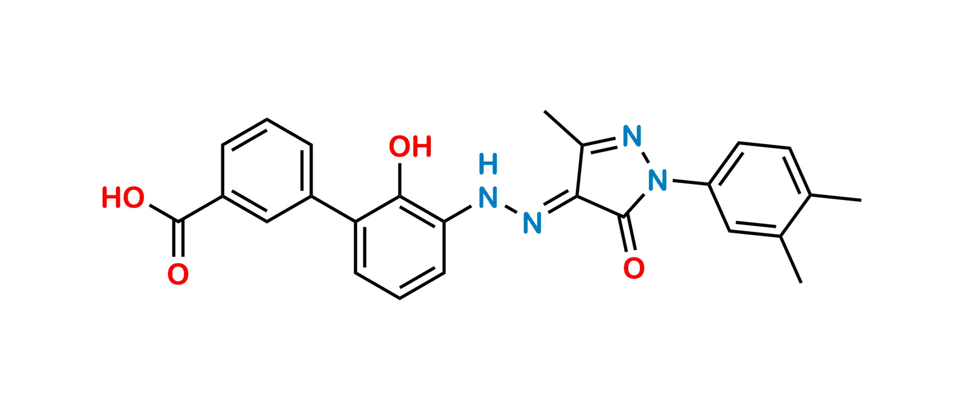 Chemical Name: (E)-3'-(2-(1-(3,4-dimethylphenyl)-3-methyl-5-oxo-1,5-dihydro-4H-pyrazol-4-ylidene)hydrazinyl)-2'-hydroxy-[1,1'-biphenyl]-3-carboxylic acid