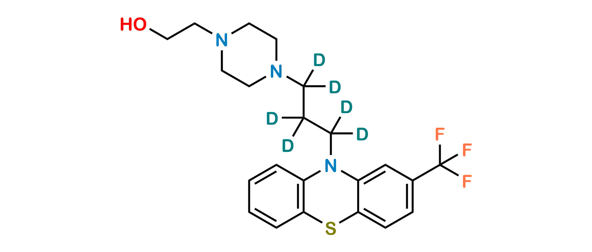 Chemical Name: 2-(4-(3-(2-(trifluoromethyl)-10H-phenothiazin-10-yl)propyl-1,1,2,2,3,3-d6)piperazin-1-yl)ethan-1-ol