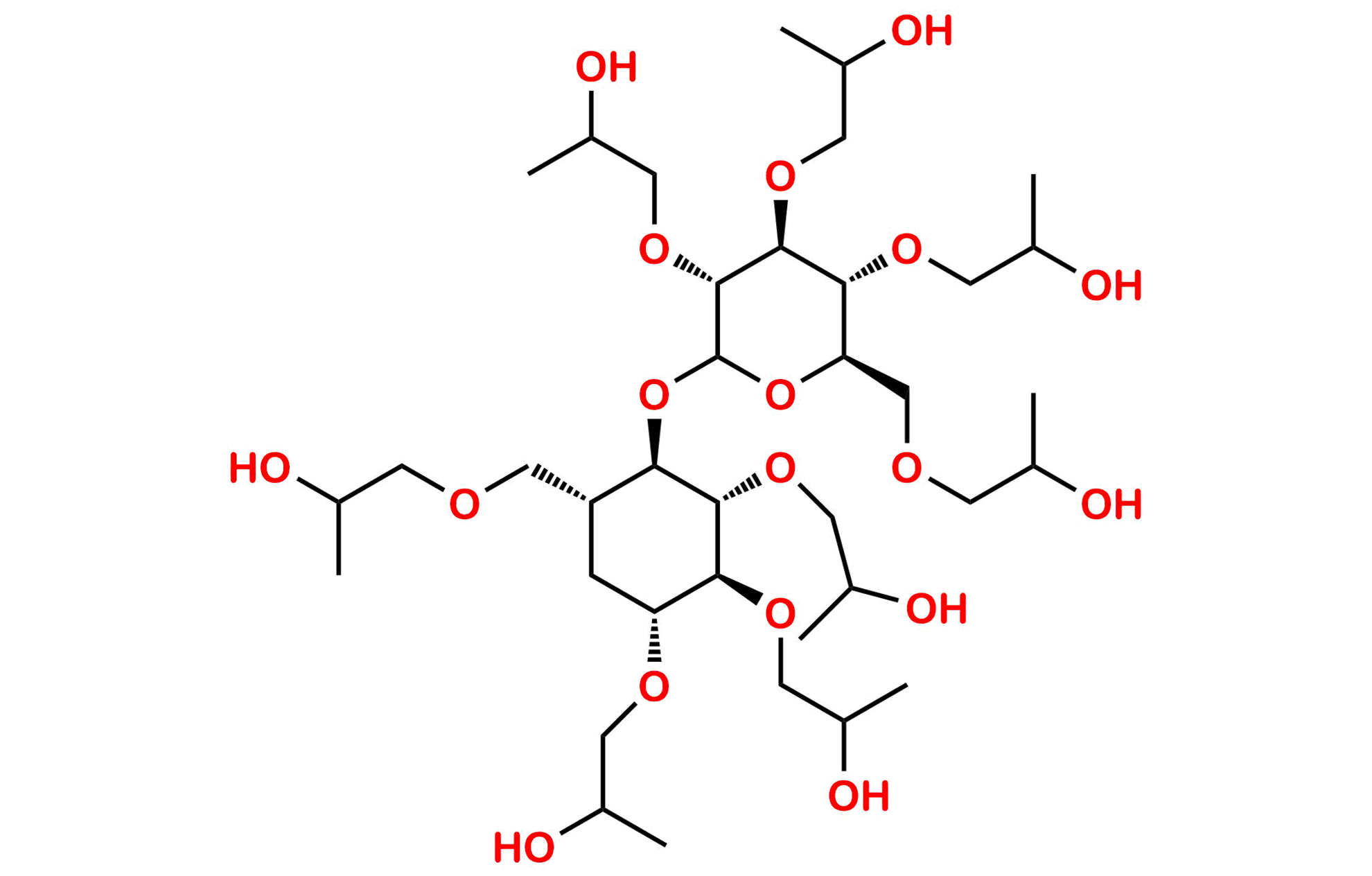 Smile: OC(C)CO[C@H]1[C@H](OCC(C)O)[C@@H](COCC(O)C)OC(O[C@@H]2[C@@H](COCC(C)O)C[C@@H](OCC(O)C)[C@H](OCC(O)C)[C@H]2OCC(O)C)[C@@H]1OCC(C)O