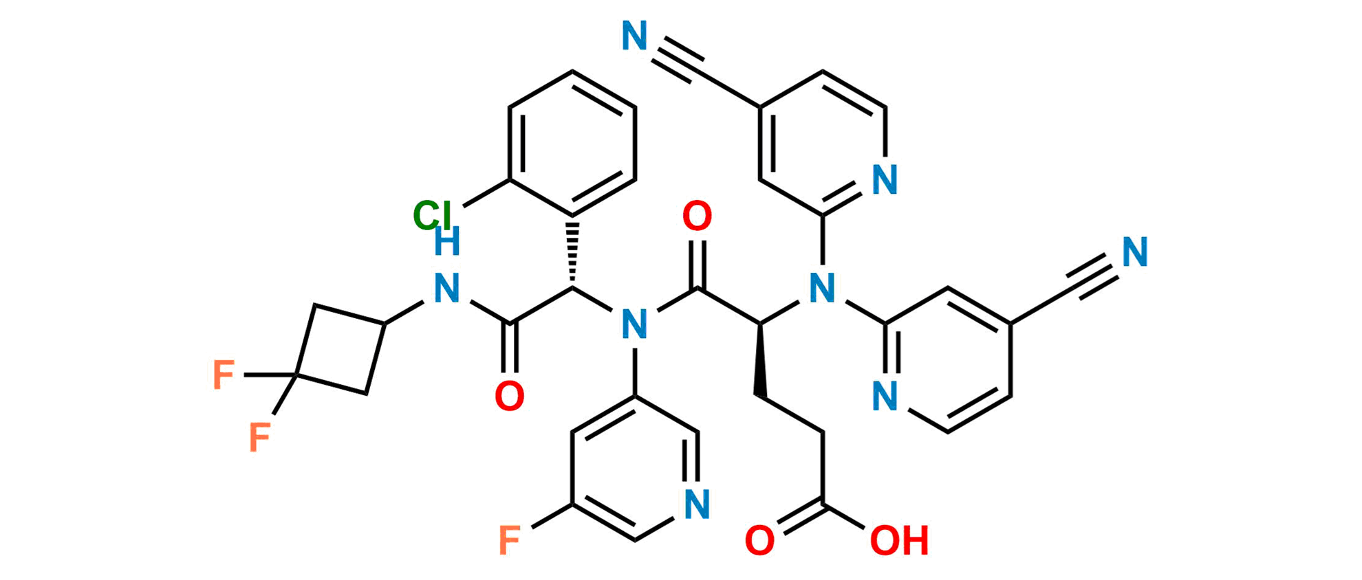 Chemical Name: (S)-4-(Bis(4-cyanopyridin-2-yl)amino)-5-(((S)-1-(2-chlorophenyl)-2-((3,3-difluorocyclobutyl)amino)-2-oxoethyl)(5-fluoropyridin-3-yl)amino)-5-oxopentanoic acid
