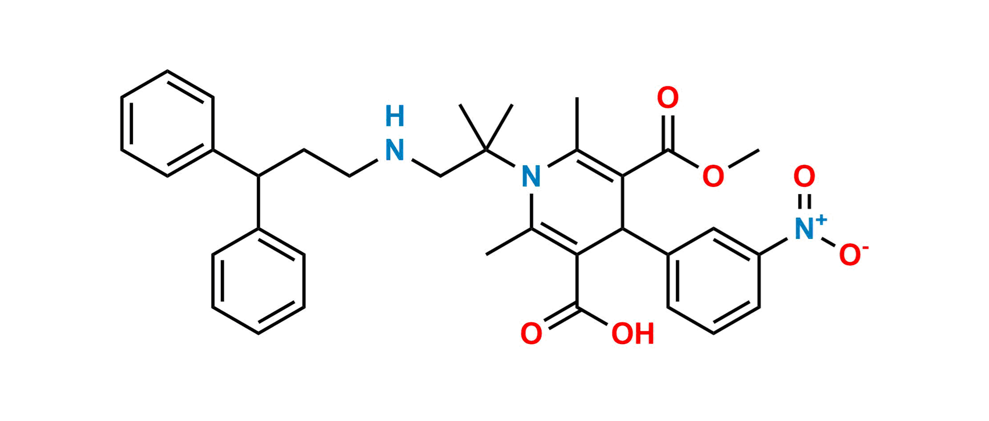 Chemical Name: 1-(1-((3,3-diphenylpropyl)amino)-2-methylpropan-2-yl)-5-(methoxycarbonyl)-2,6-dimethyl-4-(3-nitrophenyl)-1,4-dihydropyridine-3-carboxylic acid