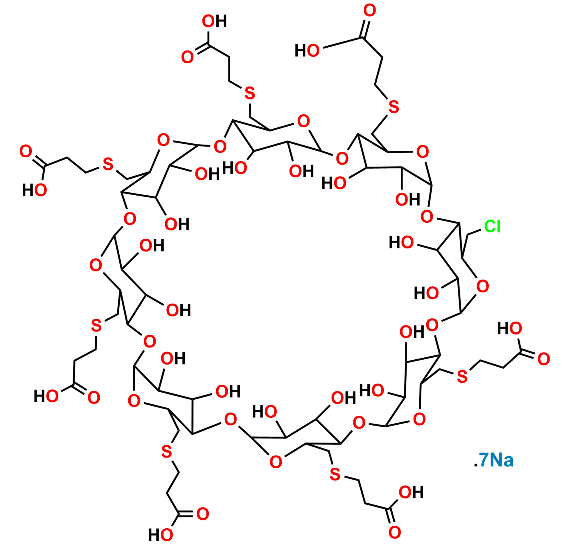 Mol.F.: C69H107ClO46S7•xNa