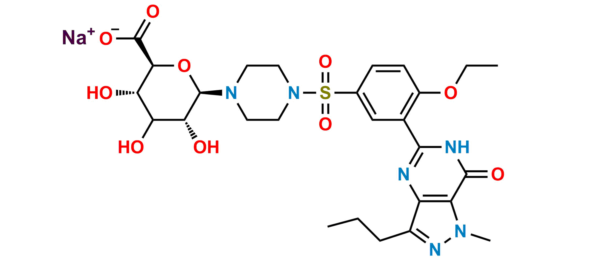Chemical Name: Sodium (2S,3S,5R,6R)-6-(4-((4-ethoxy-3-(1-methyl-7-oxo-3-propyl-6,7-dihydro-1H-pyrazolo[4,3-d]pyrimidin-5-yl)phenyl)sulfonyl)piperazin-1-yl)-3,4,5-trihydroxytetrahydro-2H-pyran-2-carboxylate