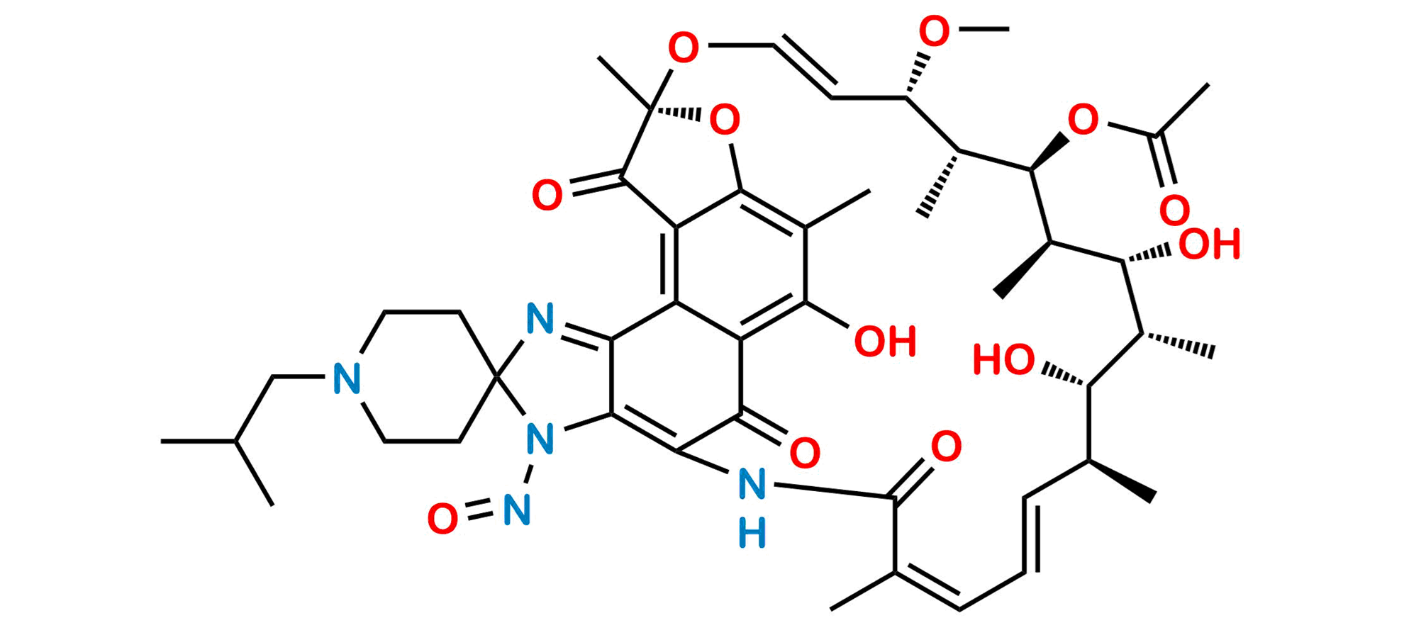 Smile: CC(C)CN(CC1)CCC1(N2N=O)N=C3C2=C(NC4=O)C(C5=C(O)C(C)=C(O[C@@](O/C=C/[C@H](OC)[C@@H](C)[C@@H](OC(C)=O)[C@H](C)[C@H](O)[C@H](C)[C@@H](O)[C@@H](C)/C=C/C=C4/C)(C)C6=O)C6=C53)=O