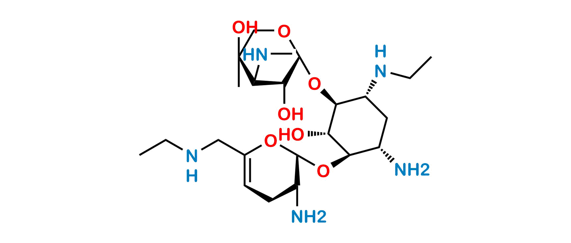 Smile: N[C@@H]1CC=C(CNCC)O[C@@H]1O[C@@H]2[C@@H](N)C[C@@H](NCC)[C@H](O[C@H]3OC[C@@](O)(C)[C@H](NC)[C@H]3O)[C@H]2O