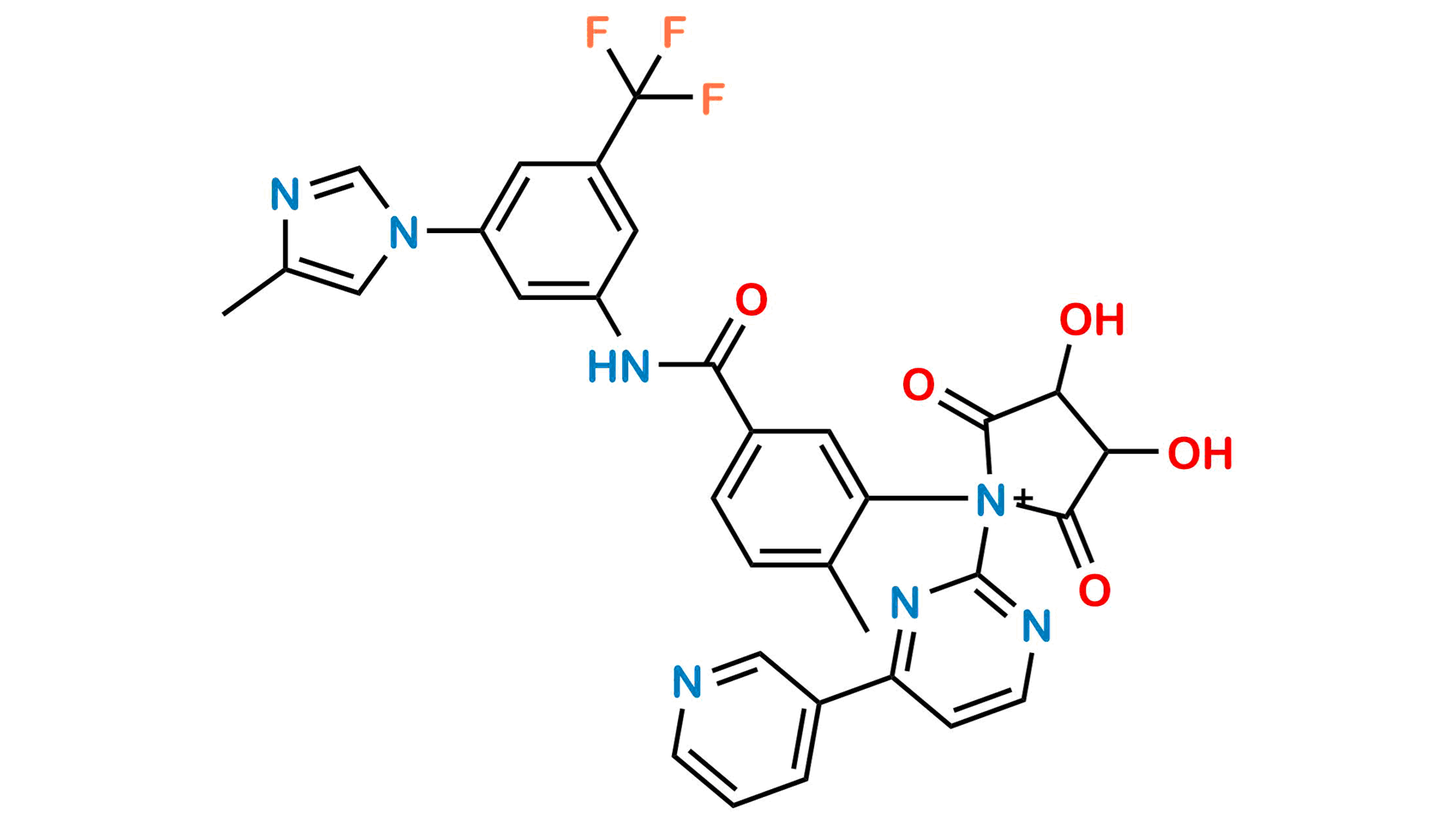 Chemical Name: 3,4-Dihydroxy-1-(2-methyl-5-((3-(4-methyl-1H-imidazol-1-yl)-5-(trifluoromethyl)phenyl)carbamoyl)phenyl)-2,5-dioxo-1-(4-(pyridin-3-yl)pyrimidin-2-yl)pyrrolidin-1-ium