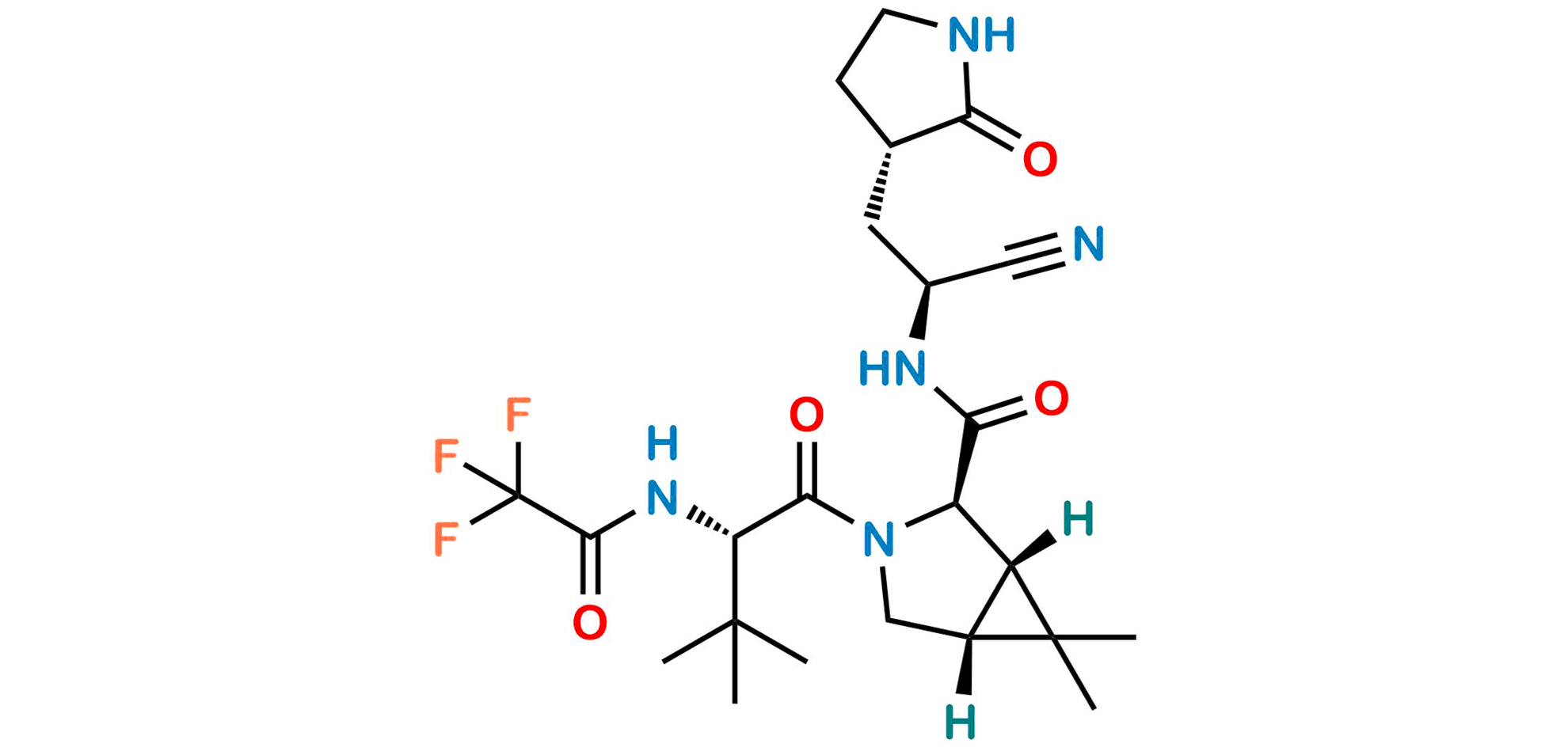 Chemical Name: (1S,2R,5R)-N-((S)-1-Cyano-2-((S)-2-oxopyrrolidin-3-yl)ethyl)-3-((S)-3,3-dimethyl-2-(2,2,2-trifluoroacetamido)butanoyl)-6,6-dimethyl-3-azabicyclo[3.1.0]hexane-2-carboxamide