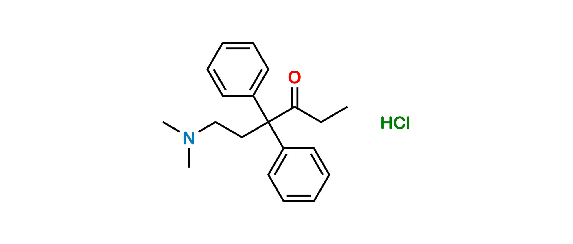 Smile: CCC(C(C1=CC=CC=C1)(C2=CC=CC=C2)CCN(C)C)=O.Cl