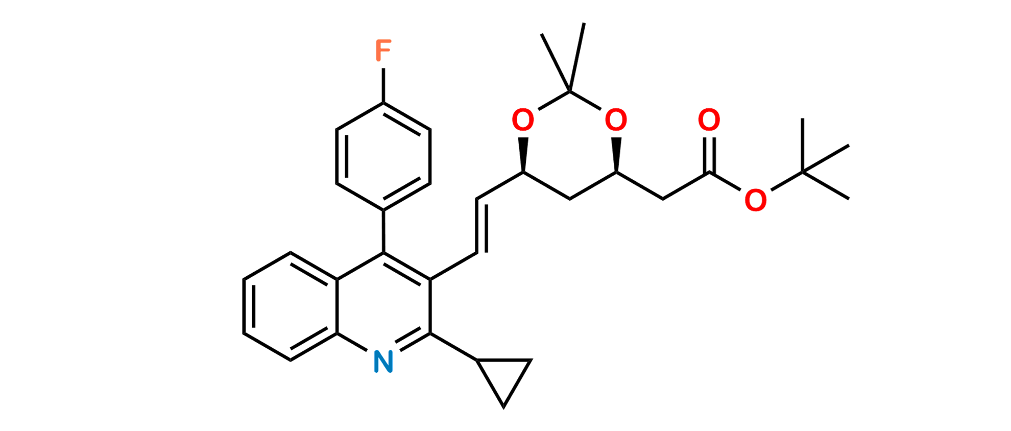 Chemical Name: tert-butyl 2-((4R,6S)-6-((E)-2-(2-cyclopropyl-4-(4-fluorophenyl)quinolin-3-yl)vinyl)-2,2-dimethyl-1,3-dioxan-4-yl)acetate