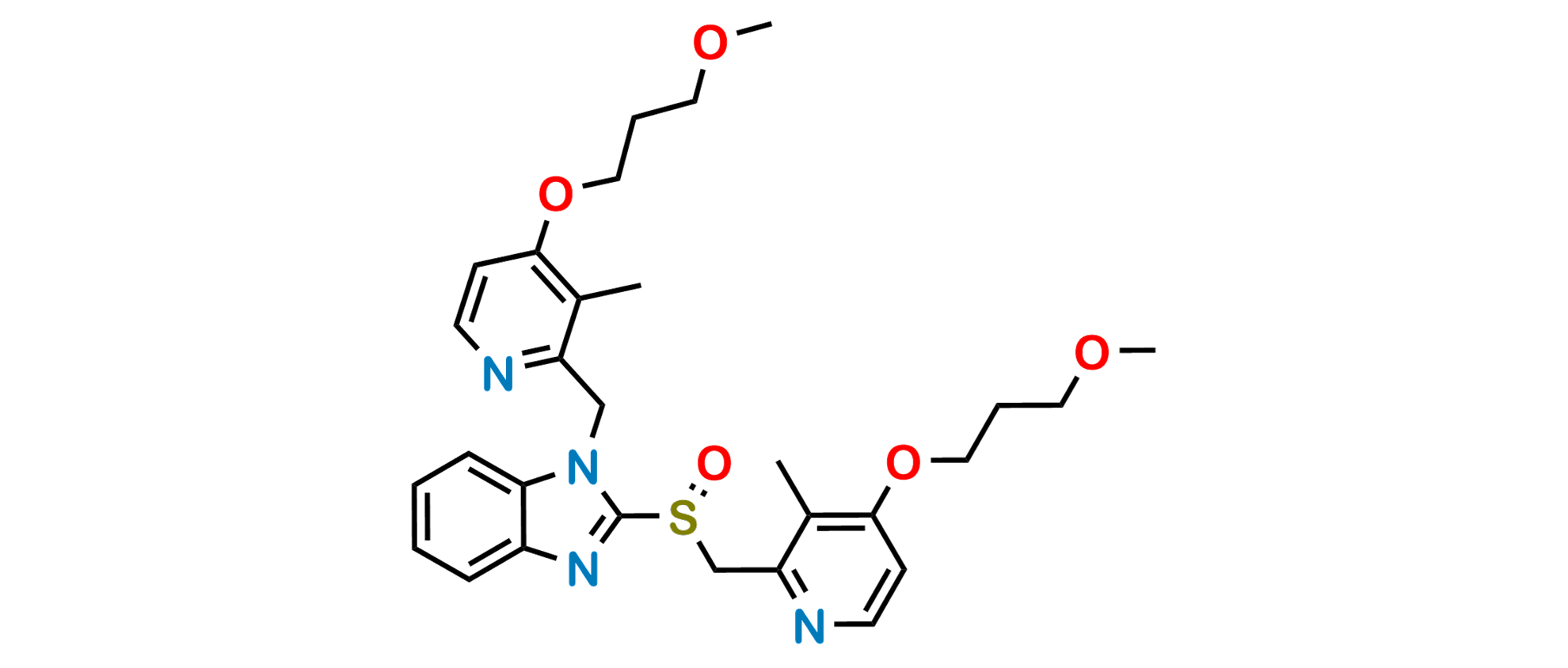 Chemical Name: N-[[4-(3-Methoxypropoxy)-3-methyl-2-pyridinyl]methyl] Rabeprazole ; 1-[[4-(3-Methoxypropoxy)-3-methyl-2-pyridinyl]methyl]-2-[[[4-(3-methoxypropoxy)-3-methyl-2-pyridinyl]methyl]sulfinyl]-1H-benzimidazole