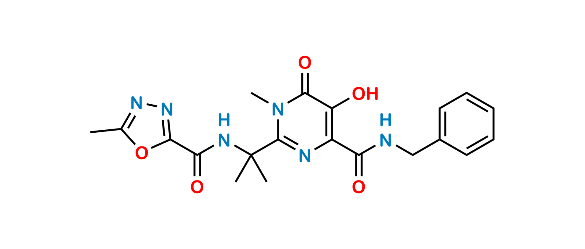 Chemical Name: N-benzyl-5-hydroxy-1-methyl-2-[2-(5-methyl-1,3,4-oxadiazole-2-carboxamido)propan-2-yl]-6-oxo-1,6-dihydropyrimidine-4-carboxamide (as per EP); N-{2-[4-(Benzylcarbamoyl)-5-hydroxy-1-methyl-6-oxo-1,6-dihydropyrimidin-2-yl]propan-2-yl}-5-methyl-1,3,4-oxadiazole-2-carboxamide (as per USP)