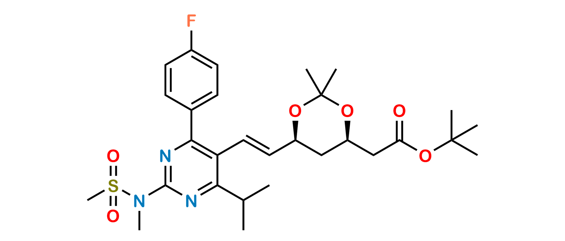 Chemical Name: 1,1-dimethylethyl [(4R,6S)-6-[(E)-2-[4-(4-fluorophenyl)-6-(1-methylethyl)-2-[methyl(methylsulfonyl)amino]pyrimidin-5-yl]ethenyl]-2,2-dimethyl-1,3-dioxan-4-yl]acetate ; tert-Butyl 2-((4R,6S)-6-((E)-2-(4-(4-fluorophenyl)-6-isopropyl-2-(N-methylmethylsulfonamido)pyrimidin-5-yl)vinyl)-2,2-dimethyl-1,3-dioxan-4-yl)acetate