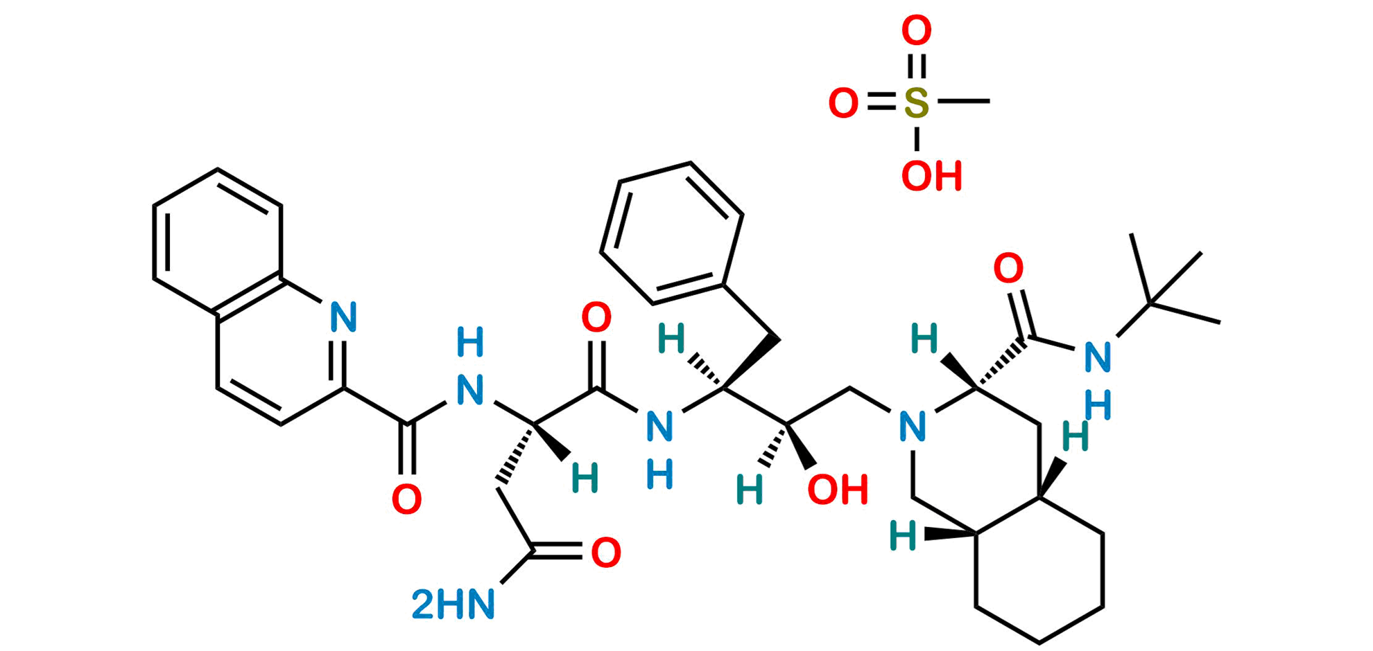 Chemical Name: (2S)-N1-[(1S,2R)-1-Benzyl-3-[(3S,4aS,8aS)-3-[(1,1-dimethylethyl)carbamoyl]octahydroisoquinolin-2(1H)-yl]-2-hydroxypropyl]-2-[(quinolin-2-ylcarbonyl)amino]butanediamide methanesulfonate (as per EP) ; Butanediamide, N1-[3-[3-[[(1,1-dimethylethyl)amino]carbon yl]octahydro-2(1H)-isoquinolinyl]-2-hydroxy-1-(phenylmethyl)propyl]-2-[(2-quinolinylcarbonyl)amino]-, [3S-[2[1R*(R*),2S*],3α,4aβ,8aβ]]-, monomethanesulfonate (salt) (as per USP)