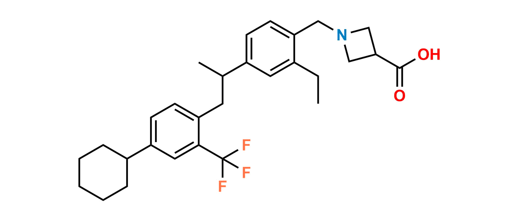 Chemical Name: 1-(4-(1-(4-cyclohexyl-2-(trifluoromethyl)phenyl)propan-2-yl)-2-ethylbenzyl)azetidine-3-carboxylic acid