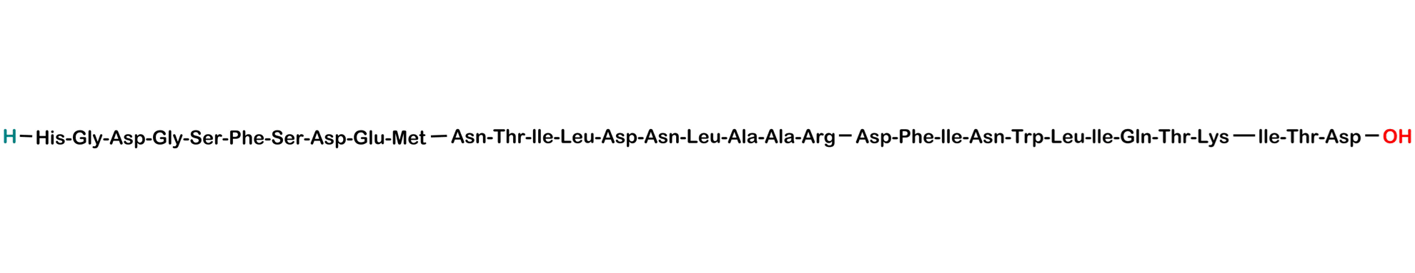 Chemical Name: L-histidylglycyl-L-α-aspartylglycyl-L-seryl-L-phenylalanyl-L-seryl-L-α-aspartyl-L-α-glutamyl-L-methionyl-L-asparaginyl-L-threonyl-L-isoleucyl-L-leucyl-L-α-aspartyl-L-asparaginyl-L-leucyl-L-alanyl-L-alanyl-L-arginyl-L-α-aspartyl-L-phenylalanyl-L-isoleucyl-L-asparaginyl-L-tryptophyl-L-leucyl-L-isoleucyl-L-glutaminyl-L-threonyl-L-lysyl-L-isoleucyl-L-threonyl-L-aspartic acid