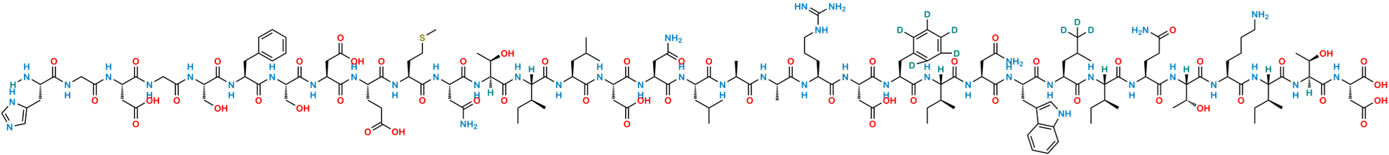Smile: [H]N[C@@H](CC1=CN=CN1)C(NCC(N[C@@H](CC(O)=O)C(NCC(N[C@H](C(N[C@@H](CC2=CC=CC=C2)C(N[C@H](C(N[C@@H](CC(O)=O)C(N[C@H](C(N[C@@H](CCSC)C(N[C@H](C(N[C@]([H])(C(N[C@]([H])(C(N[C@H](C(N[C@@H](CC(O)=O)C(N[C@H](C(N[C@H](C(N[C@@H](C)C(N[C@@H](C)C(N[C@H](C(N[C@@H](CC(O)=O)C(N[C@@H](CC3=C([2H])C([2H])=C([2H])C([2H])=C3[2H])C(N[C@]([H])(C(N[C@H](C(N[C@@H](CC4=CNC5=C4C=CC=C5)C(N[C@H](C(N[C@]([H])(C(N[C@H](C(N[C@]([H])(C(N[C@H](C(N[C@]([H])(C(N[C@]([H])(C(N[C@@H](CC(O)=O)C(O)=O)=O)[C@@H](C)O)=O)[C@H](CC)C)=O)CCCCN)=O)[C@@H](C)O)=O)CCC(N)=O)=O)[C@H](CC)C)=O)CC(C([2H])([2H])[2H])C)=O)=O)CC(N)=O)=O)[C@H](CC)C)=O)=O)=O)CCCNC(N)=N)=O)=O)=O)CC(C)C)=O)CC(N)=O)=O)=O)CC(C)C)=O)[C@H](CC)C)=O)[C@@H](C)O)=O)CC(N)=O)=O)=O)CCC(O)=O)=O)=O)CO)=O)=O)CO)=O)=O)=O)=O