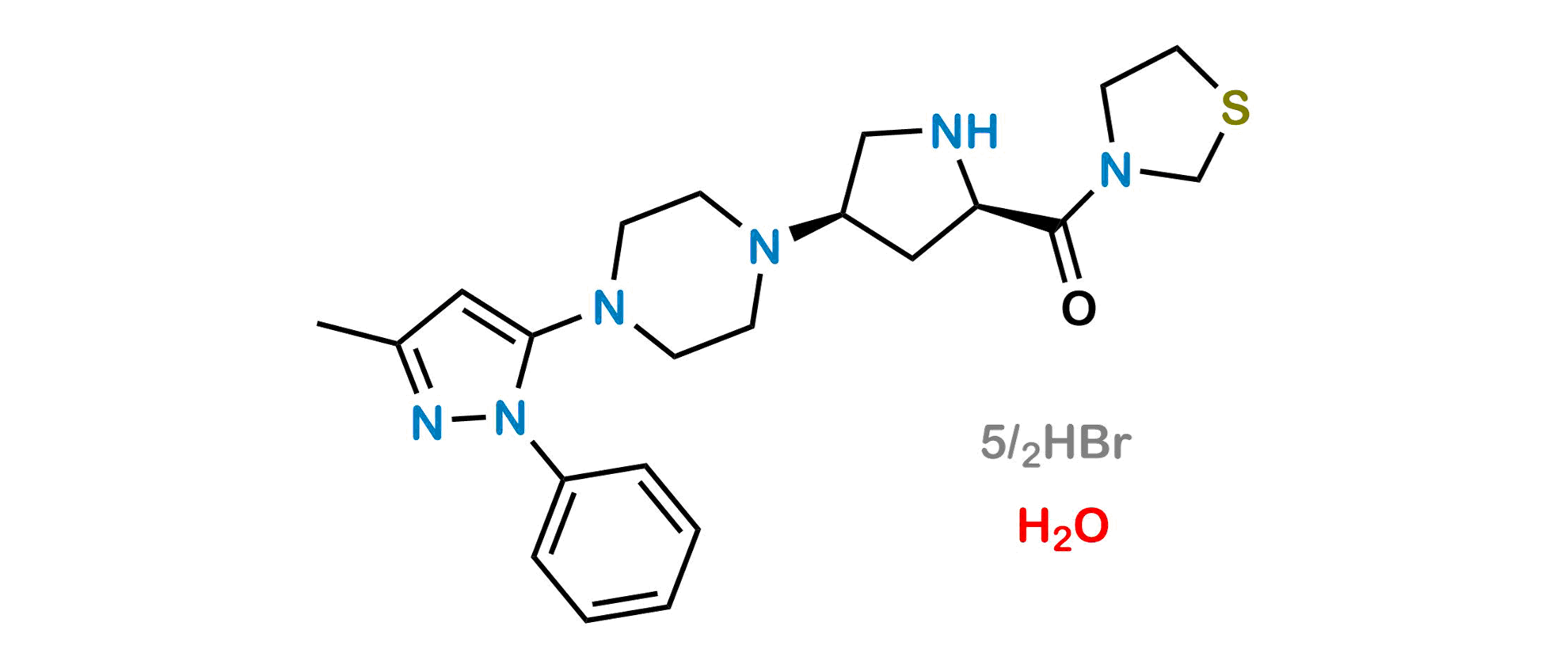 Chemical Name: Methanone, [(2R,4R)-4-[4-(3-methyl-1-phenyl-1H-pyrazol-5-yl)-1-piperazinyl]-2-pyrrolidinyl]-3-thiazolidinyl-, hydrobromide, hydrate