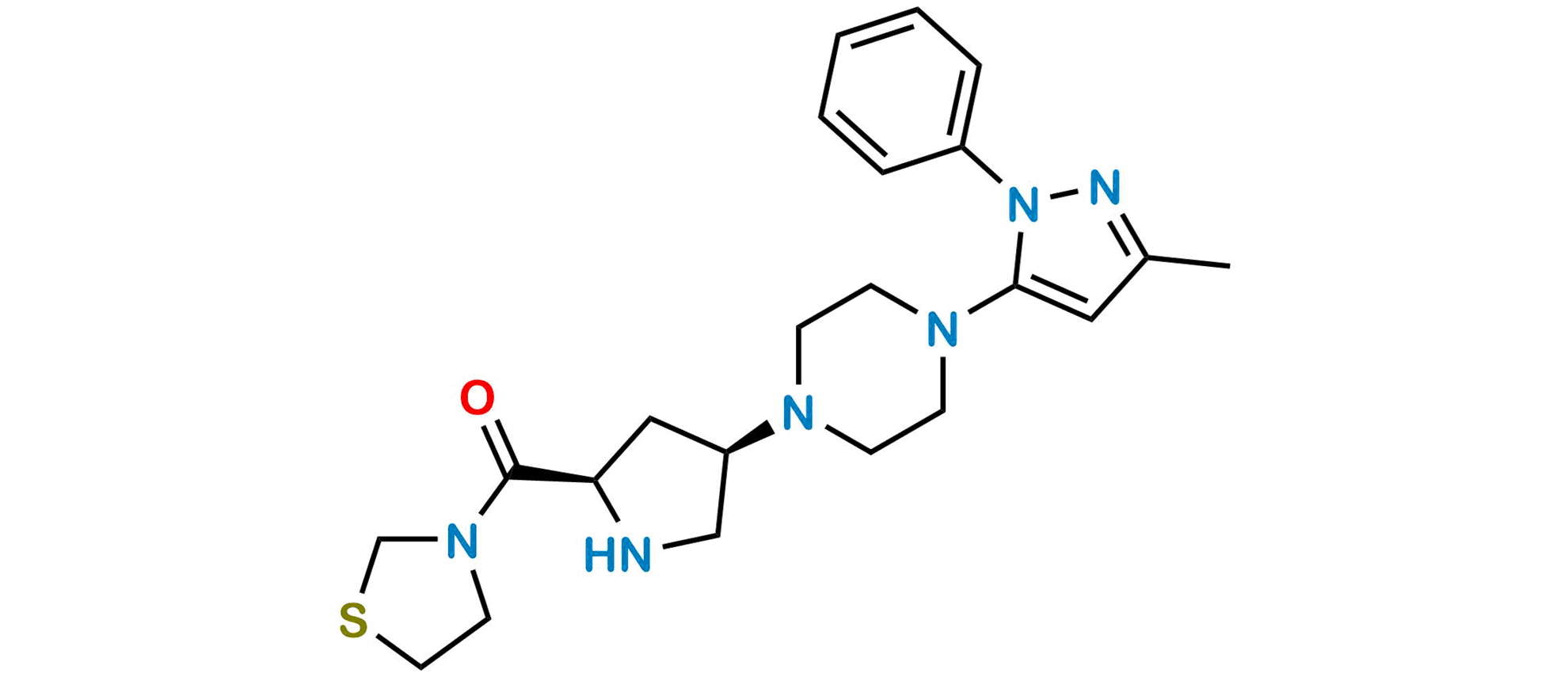 Smile: O=C([C@@H]1NC[C@H](N2CCN(C3=CC(C)=NN3C4=CC=CC=C4)CC2)C1)N5CSCC5