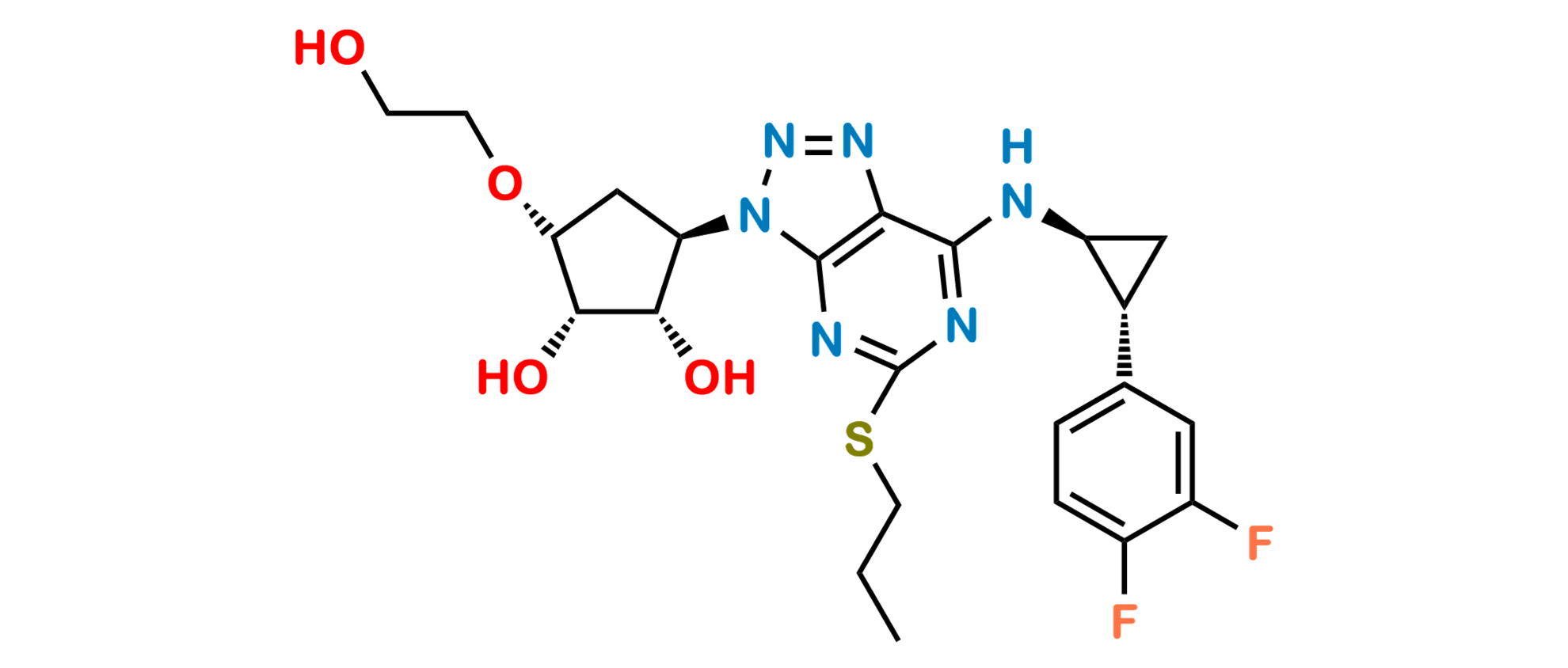 Chemical Name: (1S,2S,3R,5R)-3-(7-(((1S,2R)-2-(3,4-difluorophenyl)cyclopropyl)amino)-5-(propylthio)-3H-[1,2,3]triazolo[4,5-d]pyrimidin-3-yl)-5-(2-hydroxyethoxy)cyclopentane-1,2-diol