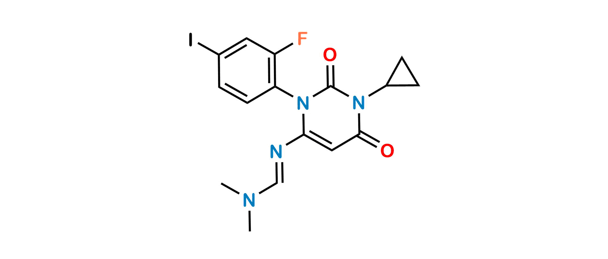 Chemical Name: N'-(1-Cyclopropyl-3-(2-fluoro-4-iodophenyl)-2,6-dioxo-1,2,3,6-tetrahydropyrimidin-4-yl)-N,N-dimethylformimidamide