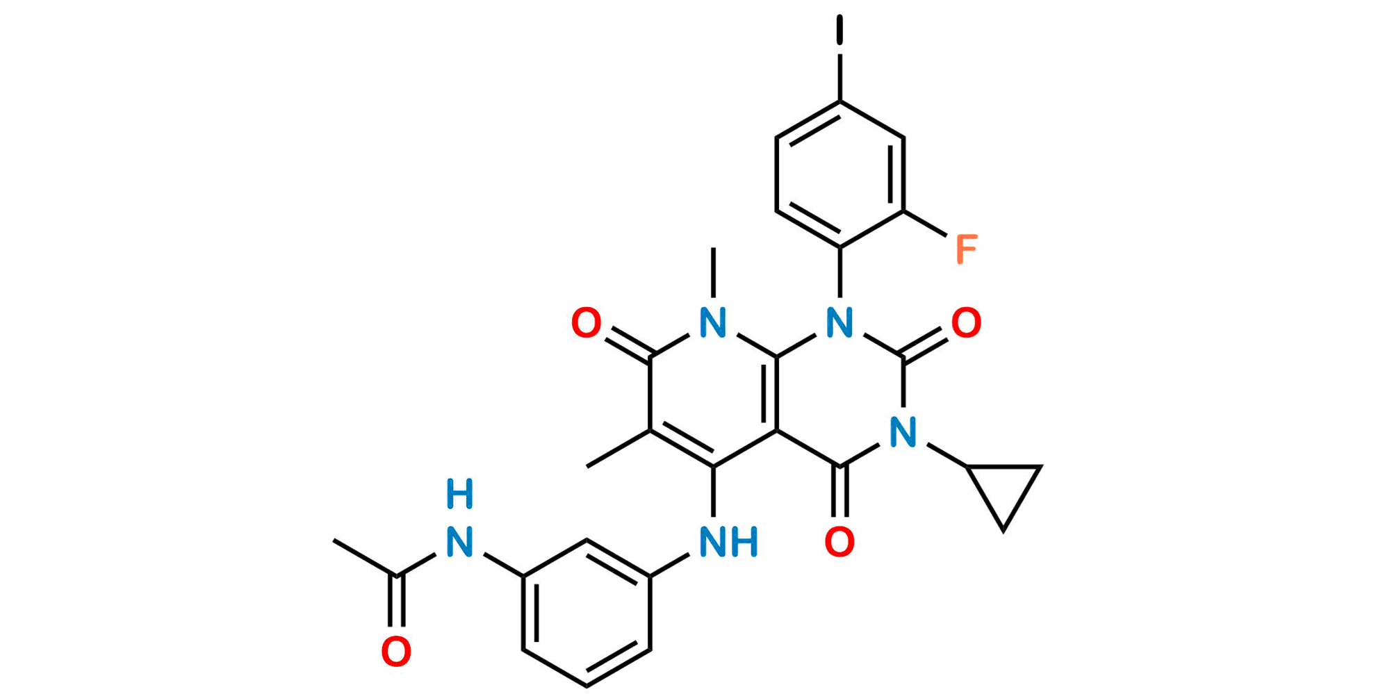 Chemical Name: N-(3-((3-Cyclopropyl-1-(2-fluoro-4-iodophenyl)-6,8-dimethyl-2,4,7-trioxo-1,2,3,4,7,8-hexahydropyrido[2,3-d]pyrimidin-5-yl)amino)phenyl)acetamide