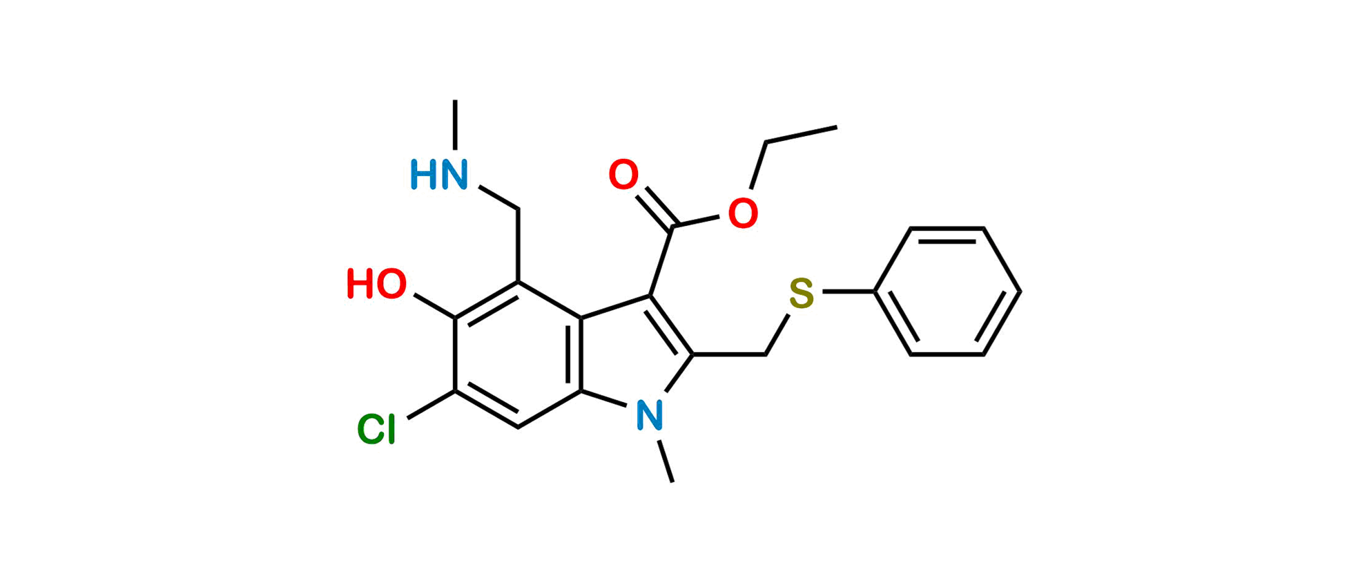 Chemical Name: Ethyl 6-chloro-5-hydroxy-1-methyl-4-((methylamino)methyl)-2-((phenylthio)methyl)-1H-indole-3-carboxylate